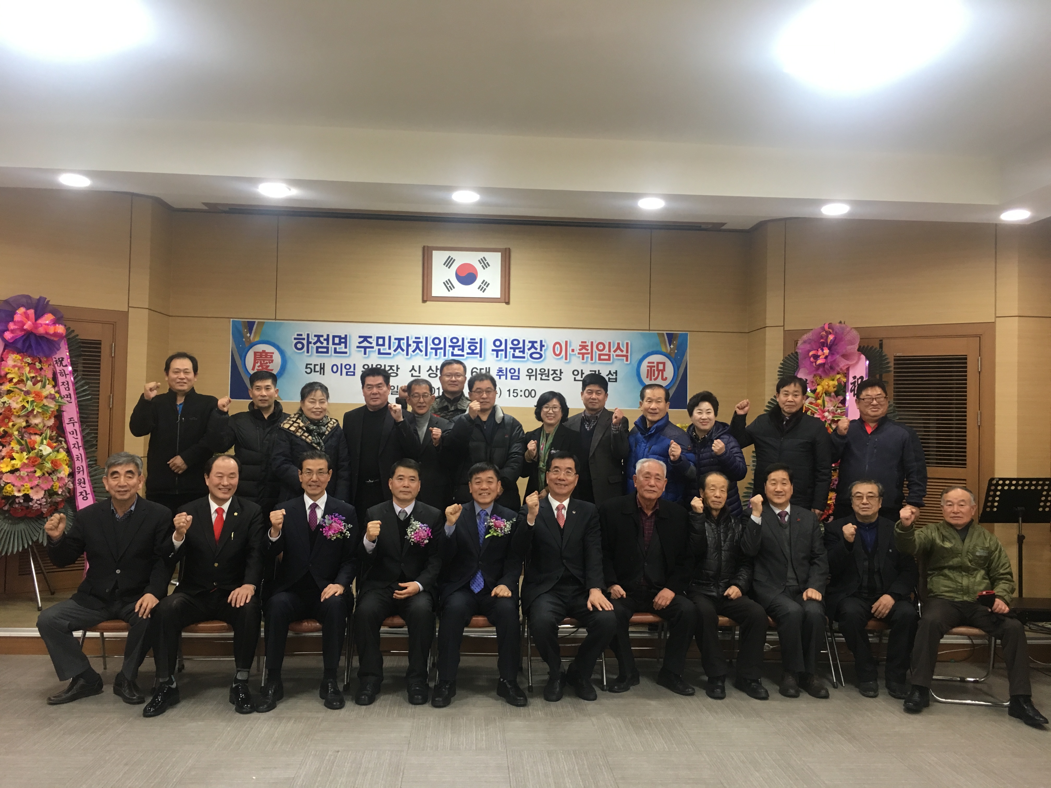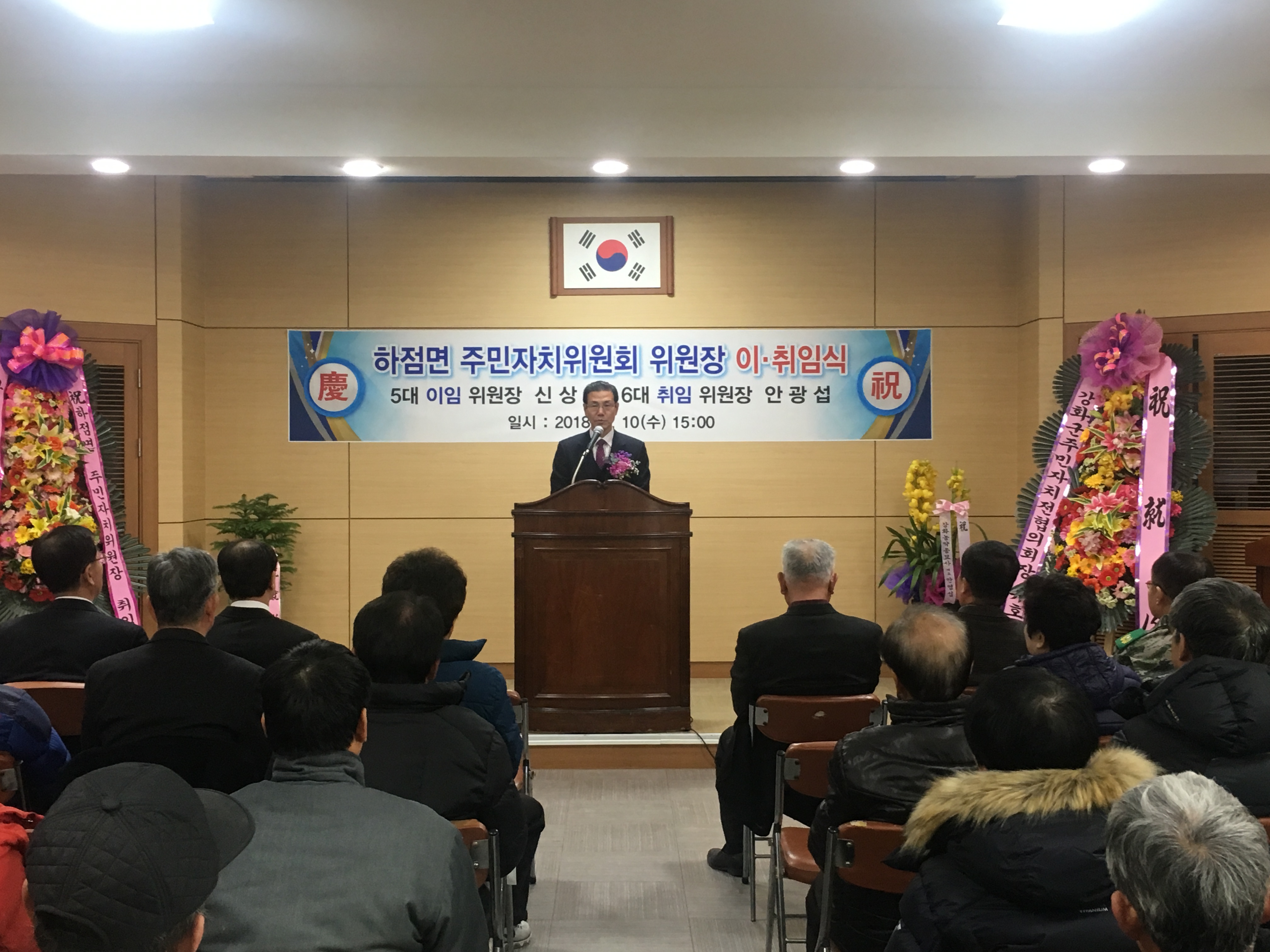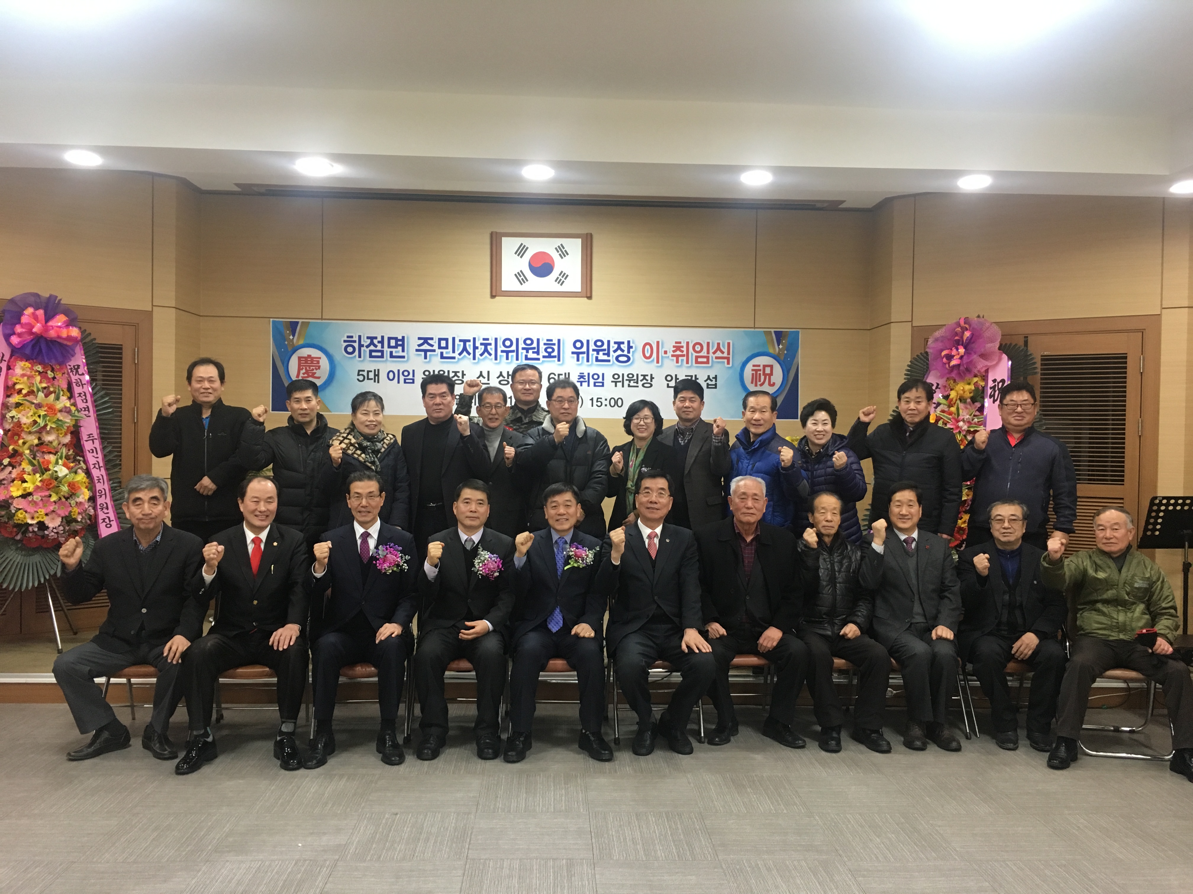 각급 기관단체장, 주민들이 참석한 가운데 제5․6대 하점면 주민자치위원장 이·취임식을 개최했다.