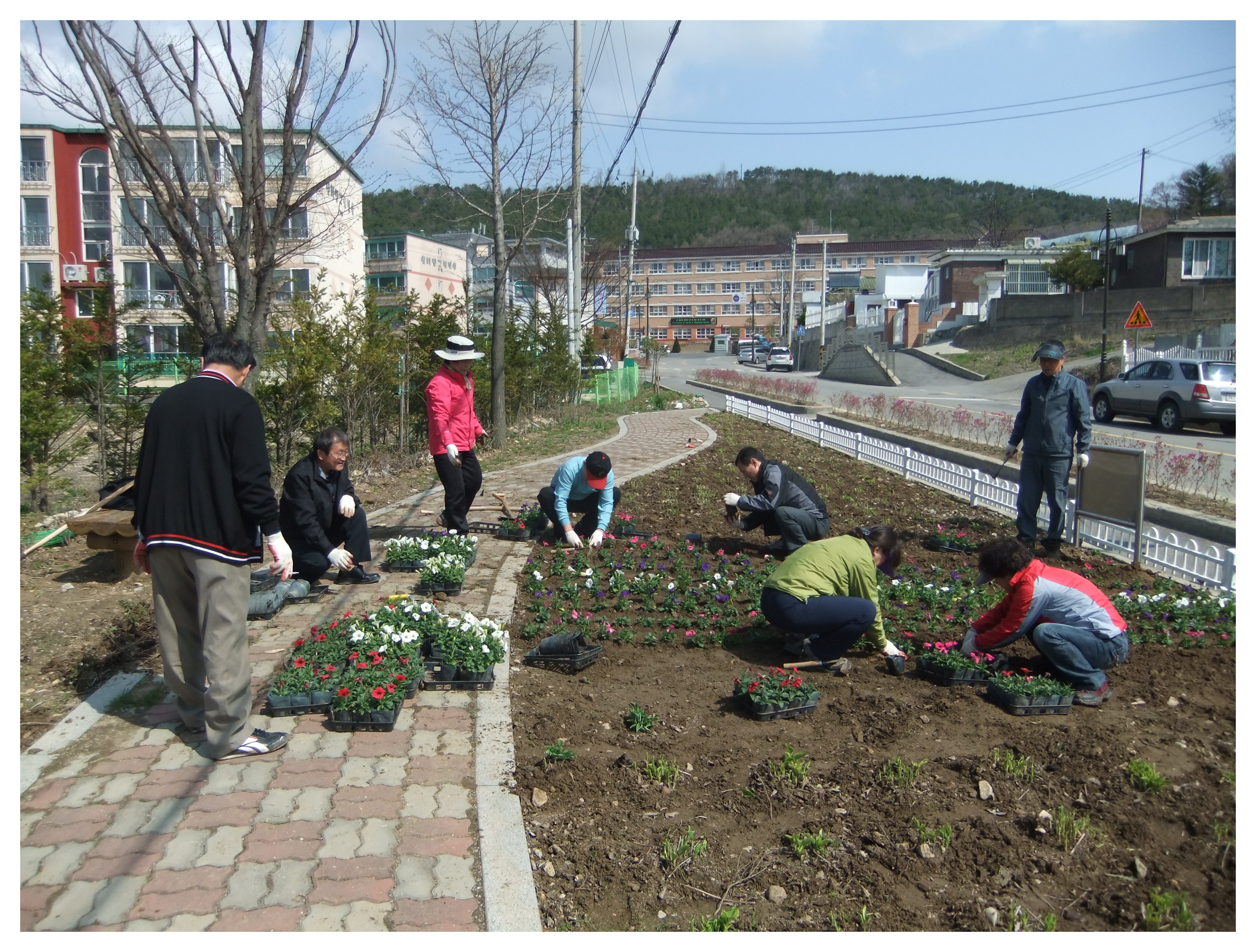 강화읍 주민자치위원회 (위원장 : 유지남) 는 4.30(금) 아침 9시~11시까지 강화여고앞 꿈나무 동산에서 페츄니아등을 식재했다.
