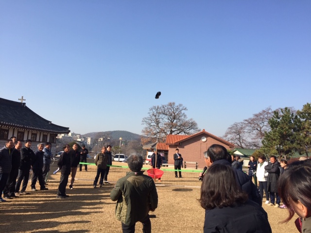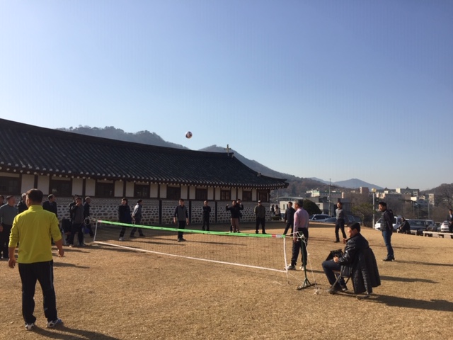 고무신 멀리던지기, 제기차기, 족구 게임을 각 면 이장단, 면 직원, 농협 직원으로