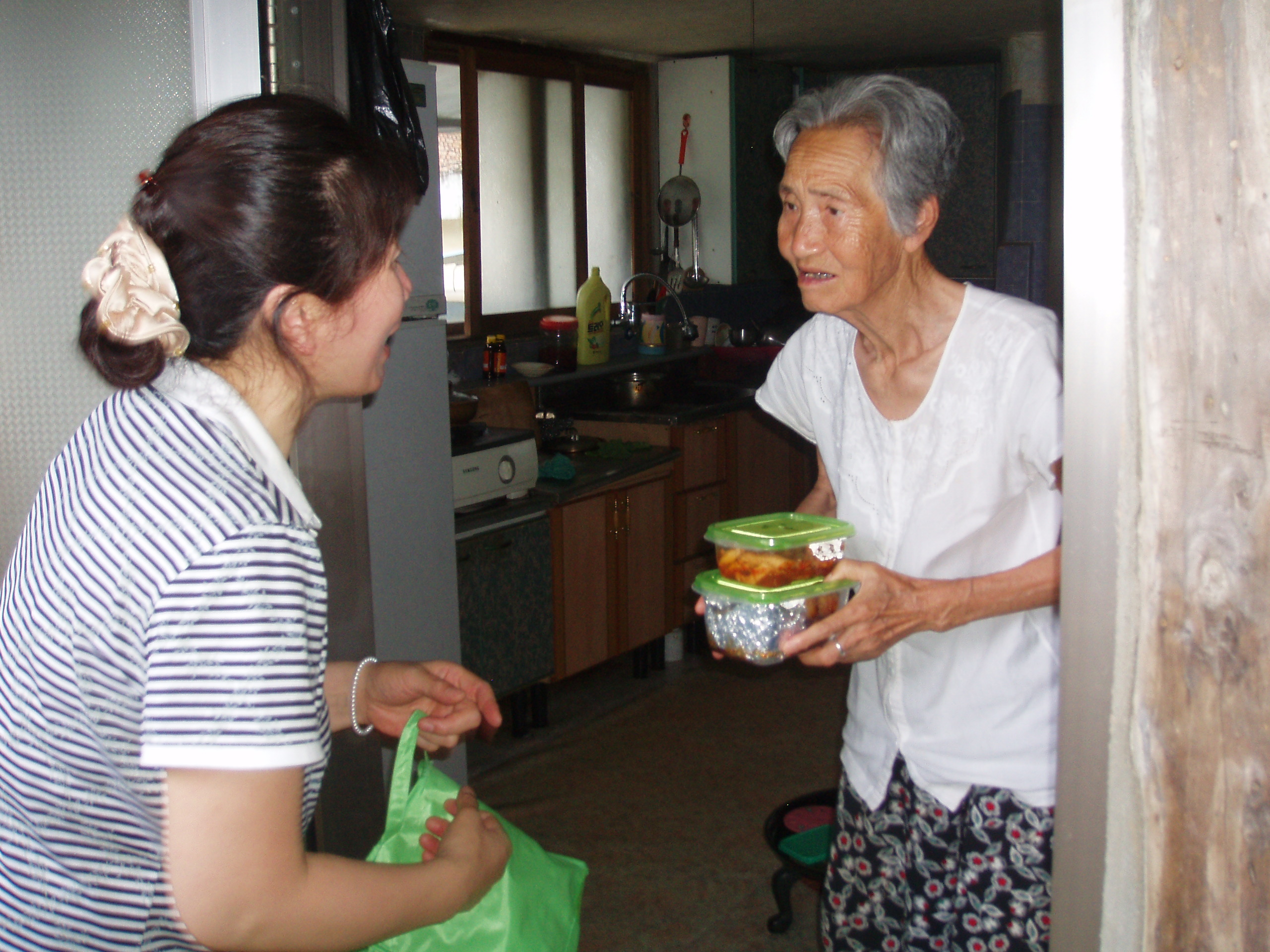 직접 정성껏 만든 밑반찬을 독거노인을 방문 전달하면서