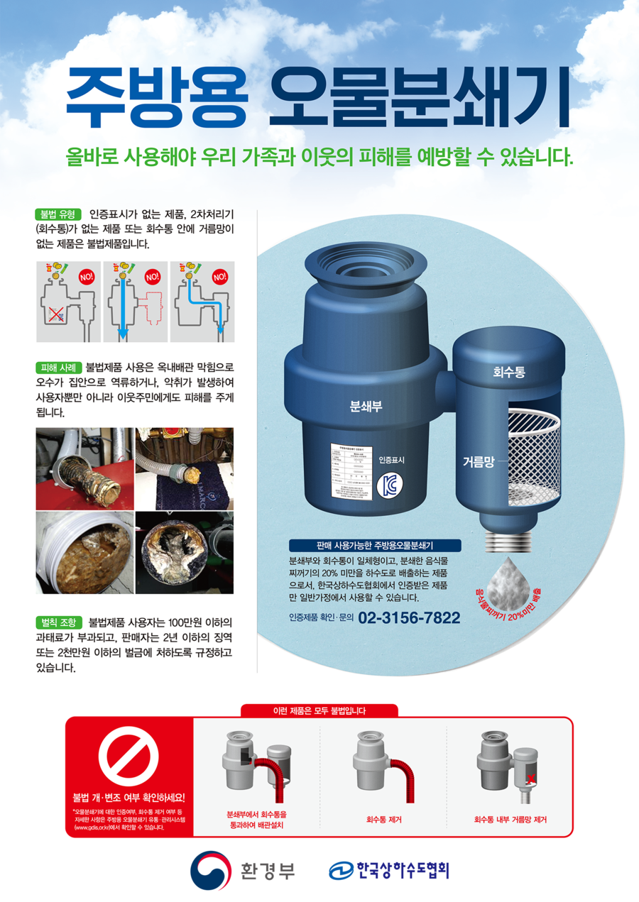 불법 주방용 오물분쇄기 구매/사용 주의 안내