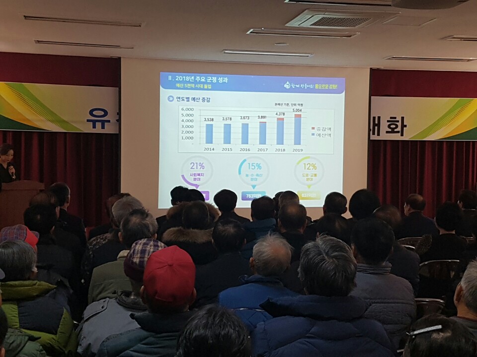 이날은 식전행사(주민공연), 표창 전달, 군수님과의 대화시간 등으로 진행이 되었다.