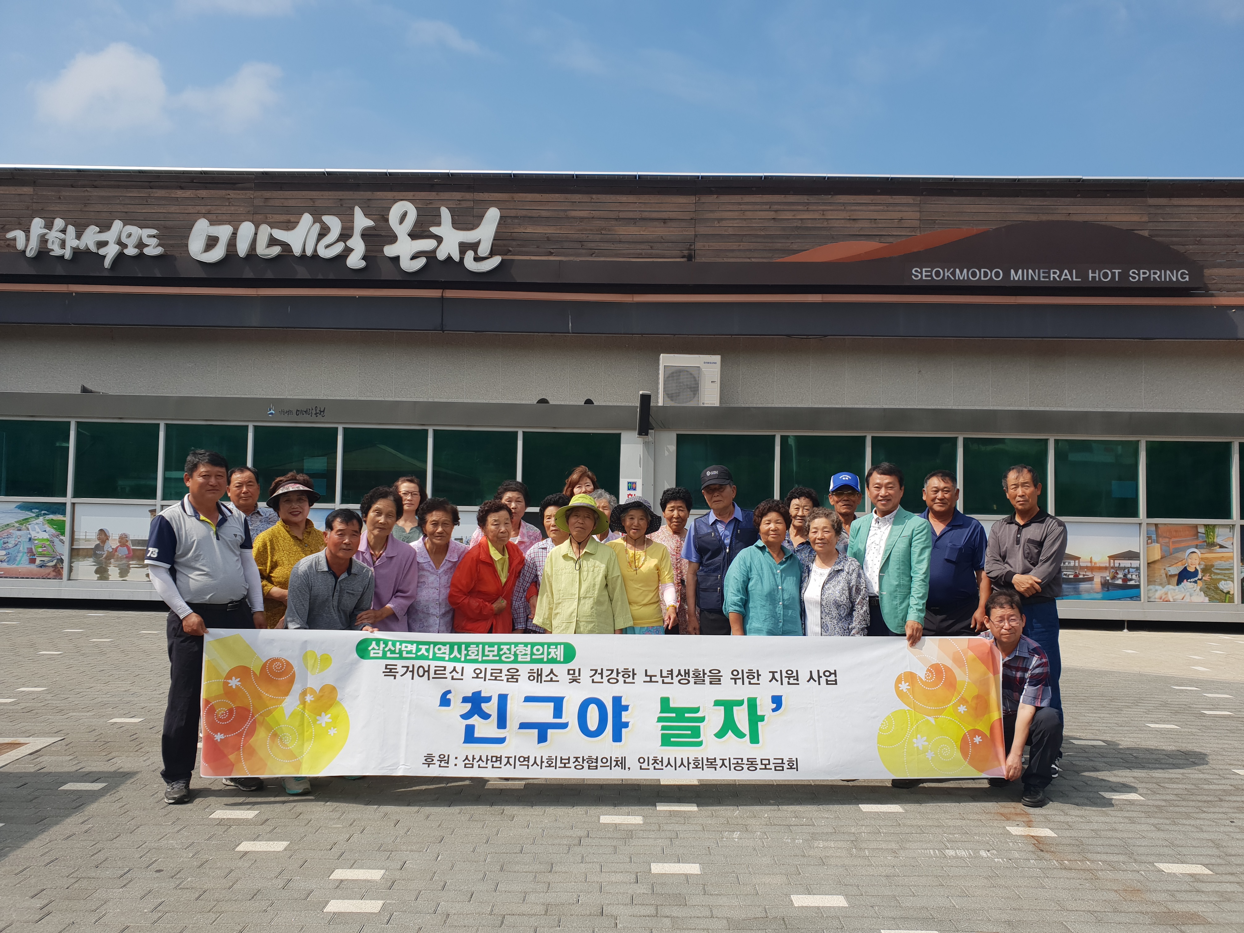 강화군 삼산면 지역사회보장협의체(공동위원장 :김성엽, 유윤무)는 지난 6월 27일 관내 독거 어르신의 20명과 함께 삼산면 미네랄온천에서 온천 체험을 하고 동네 한 바퀴를 드라이브하며 즐거운 시간을 가졌다.