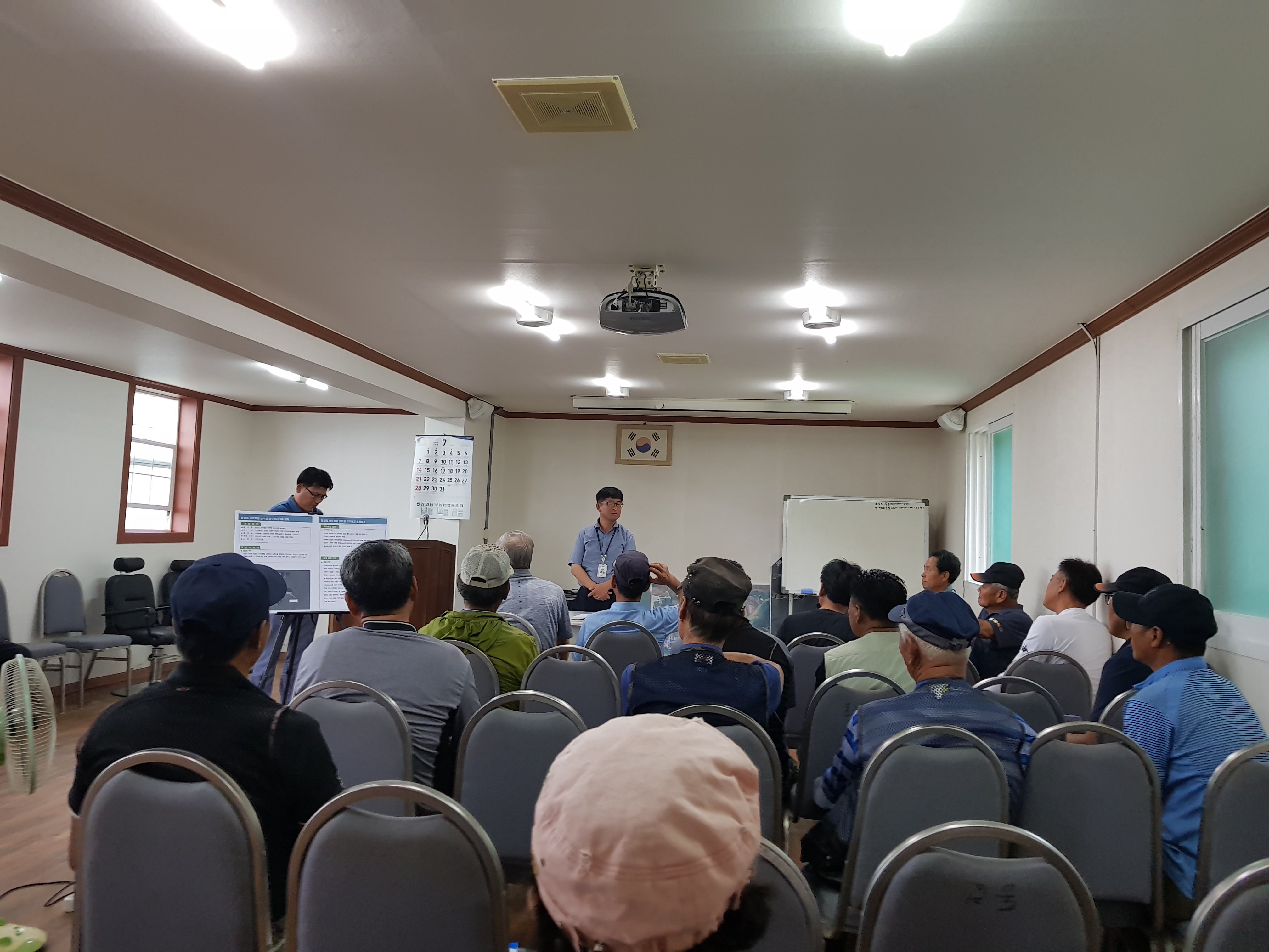 지난 2019년7월29일 오전 10시에 동검리마을회관에서 강화군청 건설과(토목지원팀장 한석현)와 용역사는 동검리 서두물항 보수보강 실시설계 2차 주민설명회를 개최하였다