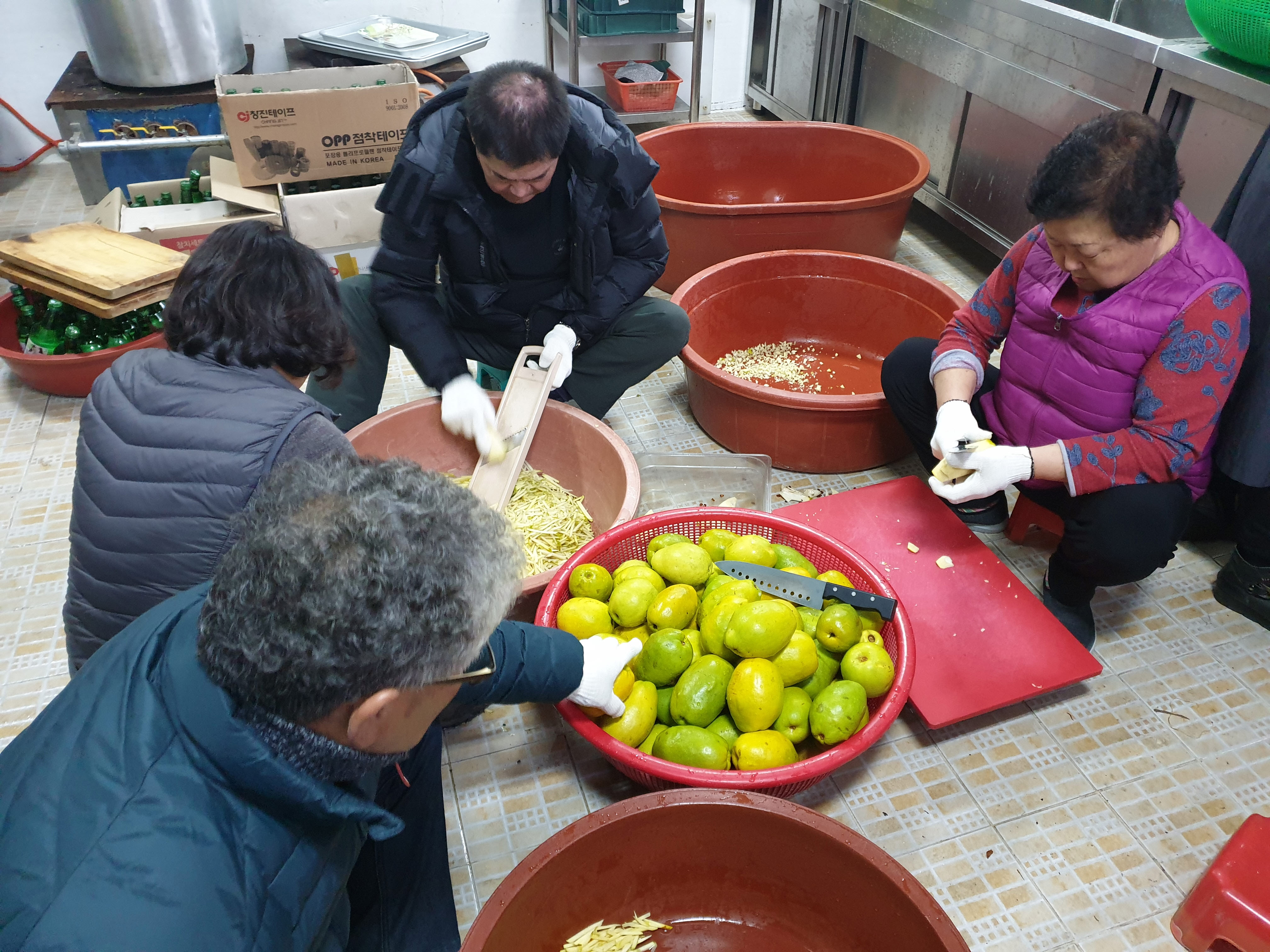 하점면 지역사회보장협의체(회장 심양섭)에서는 홀로지내는 어르신들의 겨울철 건강지킴이가 되고자  사랑의 모과청 담그기 행사를 가졌습니다.