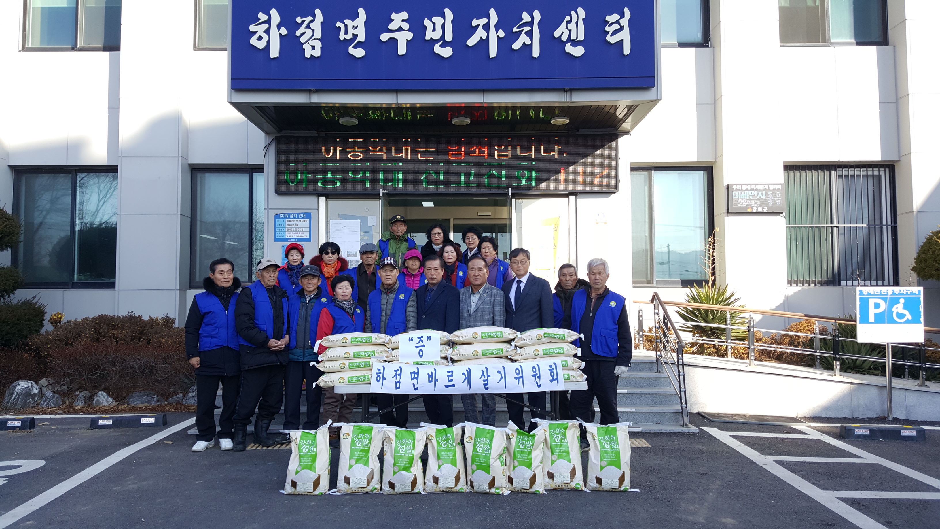 하점면 바르게살기위원회(회장 : 한상복)는 18일 회원 20여명이 모여 오전에 하점방향 내가천 일원에서 연말을 맞이하여 깨끗한 하점 만들기를 위한 대청소를 실시하고, 오후에는 관내 독거노인 등 어려운 이웃에게 쌀(10kg) 24포대를 회원들이 직접 가정을 방문해 전달하며 따뜻한 격려와 위로로 이웃사랑을 실천했다.