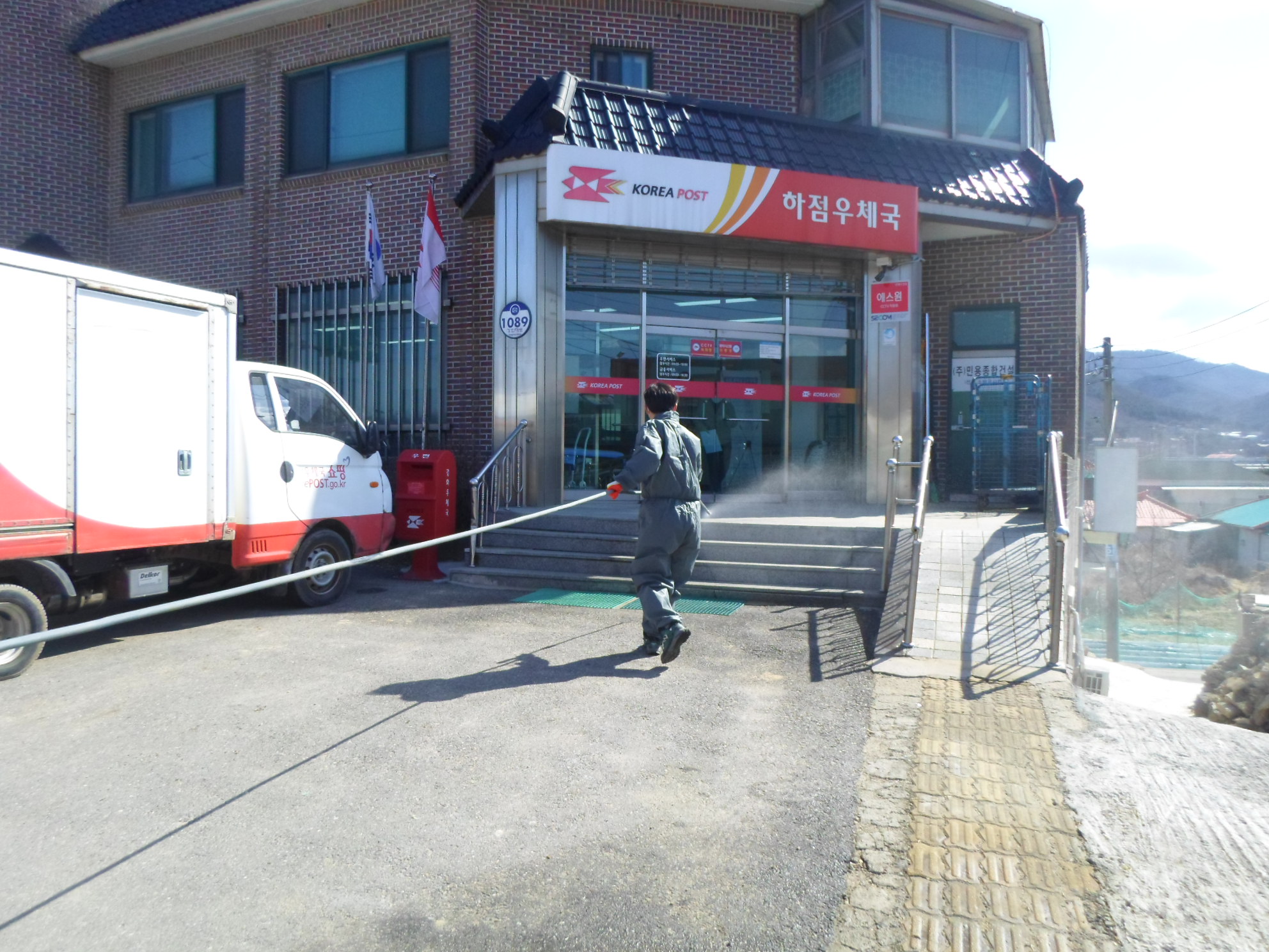 하점면 관내 다중이용시설(우체국, 농협 등)을 소독을 실시하였습니다.