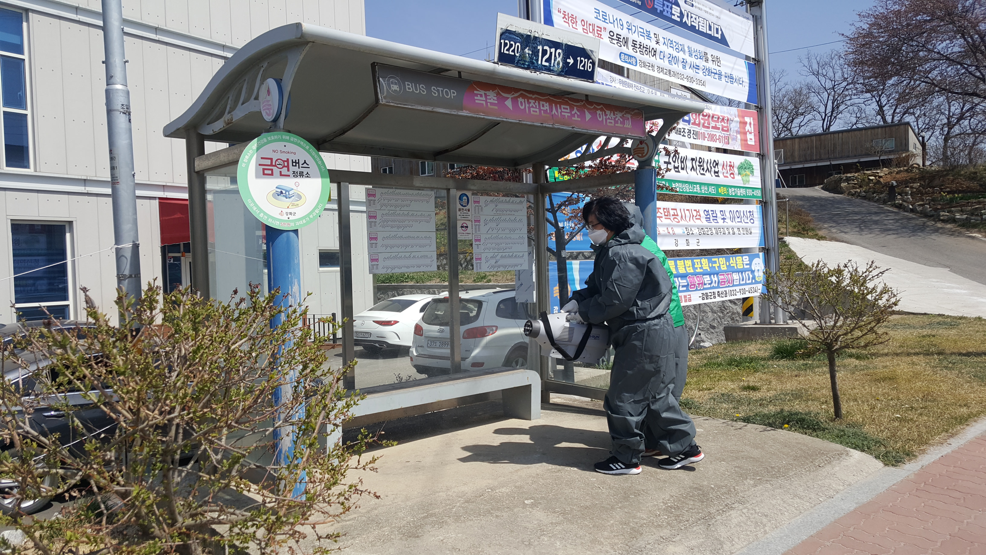 이 방역활동은 코로나19 확산 위기에도 전국 각지 상춘객들의 발길이 이어지고 있는 버스정류장 및 관내 다중이용시설인 공중화장실과 군립어린이집 등 지역주민들의 코로나19 감염을 예방하고자 실시되었다.