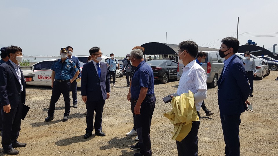 서호 차관은 파출소에 방문하여 파출소장 등 관계자들을 격려한 후 대북단체가 쌀페트 보내기 행사를 진행했던 삼산면 항포양식장 현장으로 이동하여 마을 주민들의 의견을 청취했다.