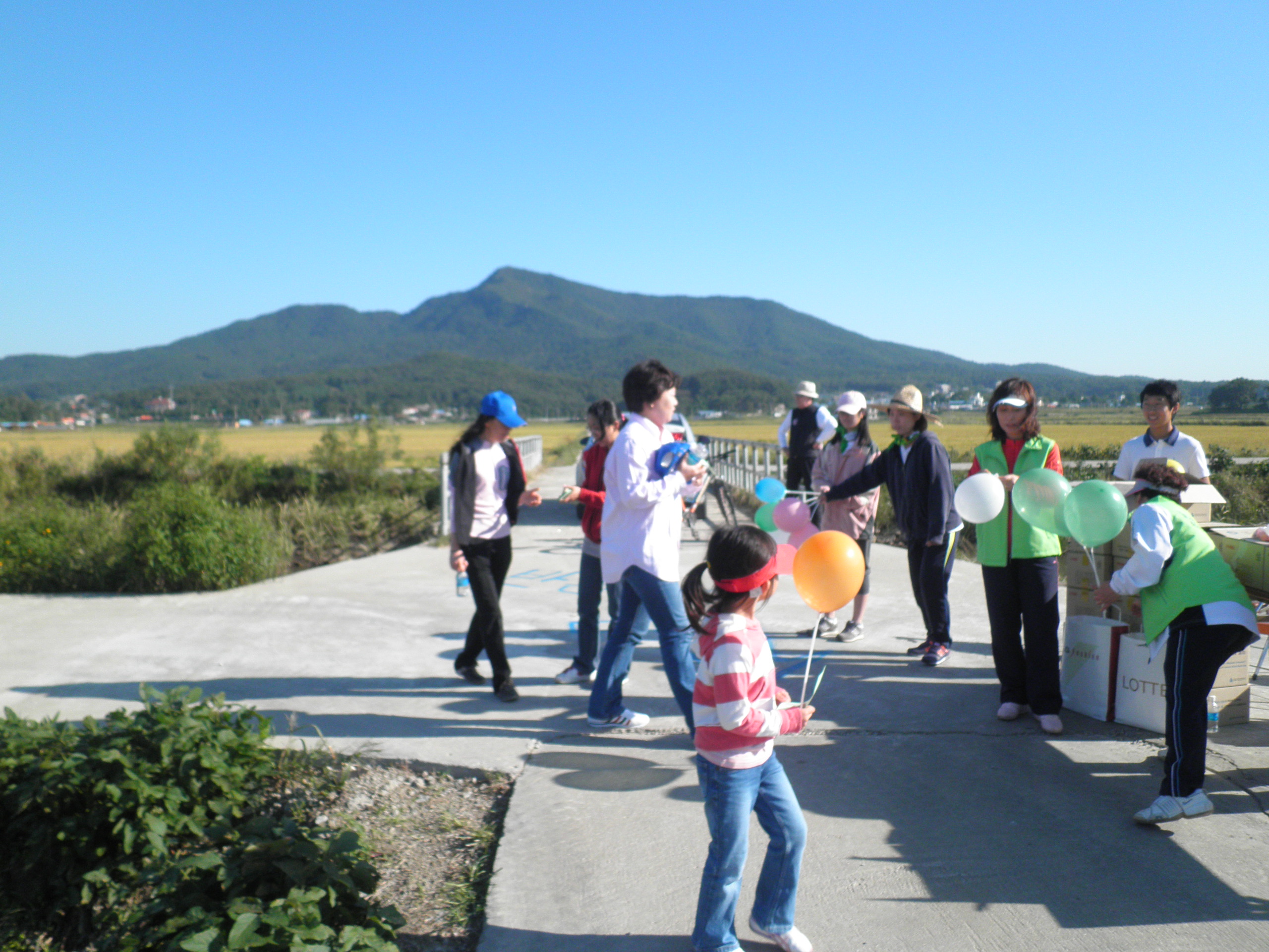 걷기코스 반환점에서 아이들에게 풍선을 나눠주었습니다.
