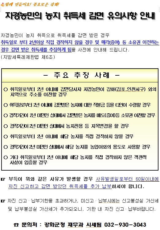 내가면 자경농민 취득세 감면 유의사항 안내