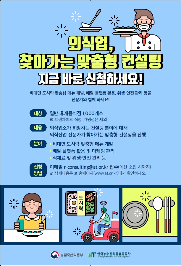 ㅇ 지원내용: 메뉴개발, 위생, 안전 및 마케팅 관리 등 맞춤형 컨설팅 지원
