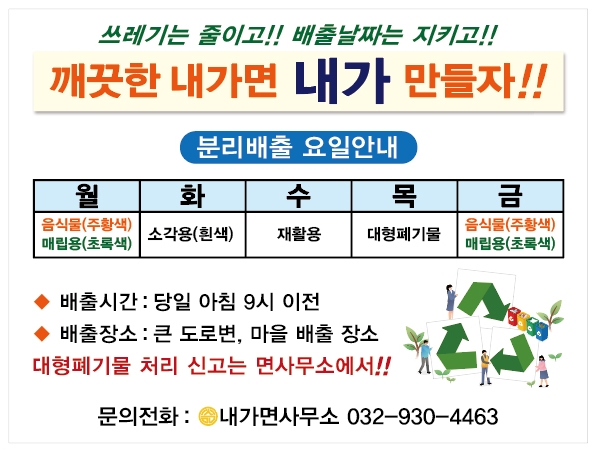 생활쓰레기 발생량 감소를 위한 면민실천운동을 전개해 면민의식 개선과 자발적 참여를 유도할 계획이다.