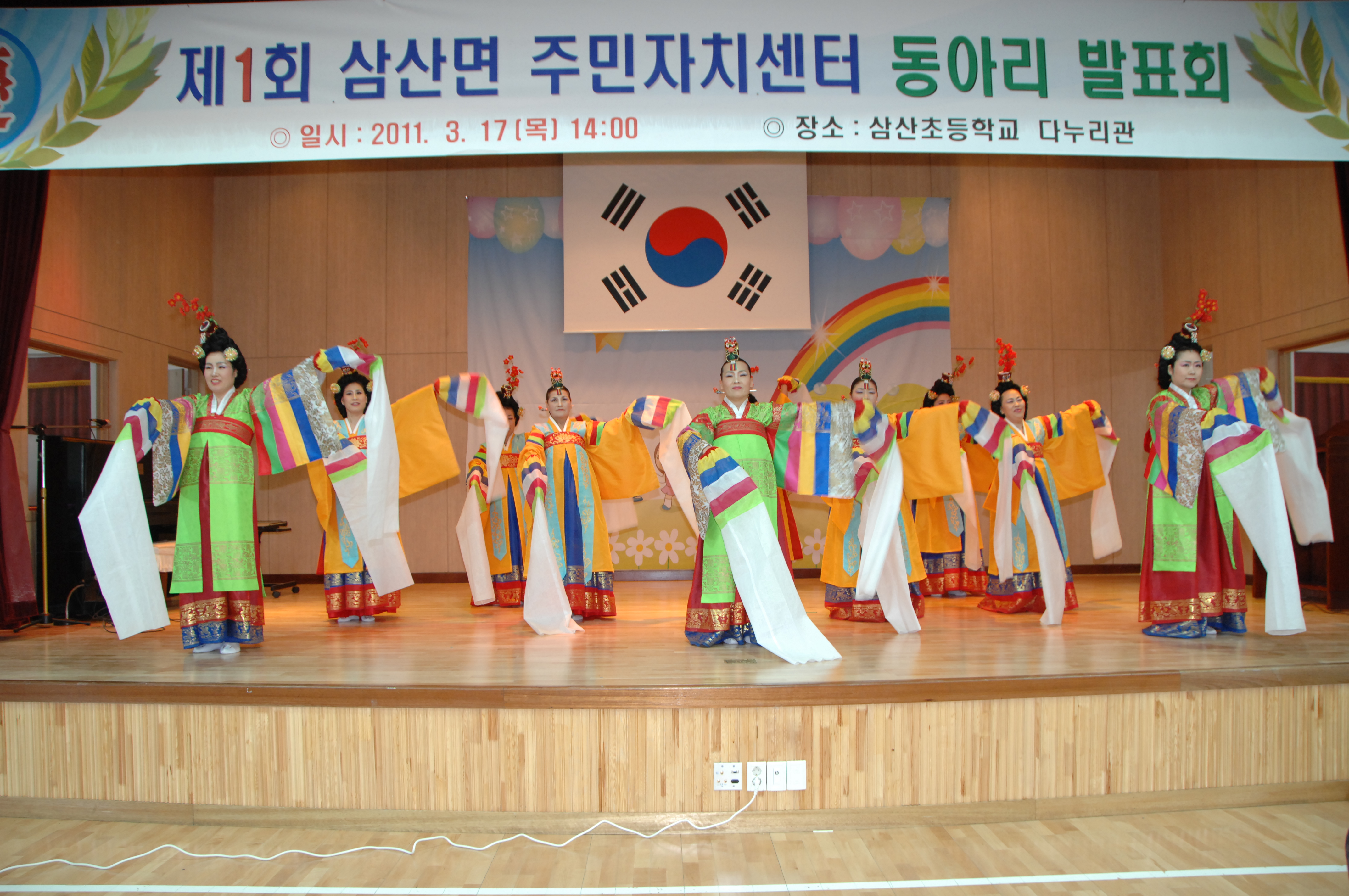 제1회 삼산면주민자치센터 동아리 발표회 사진입니다.(한국무용)