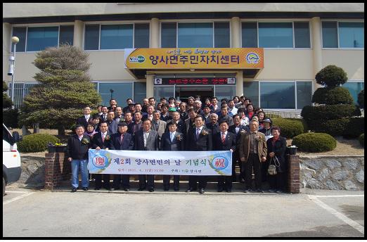 □ 양사면에서는 지난 4월 1일 양사면사무소에서 주민 70여명이 참석한 가운데 제2회 양사면민의 날 기념식을 가졌다.