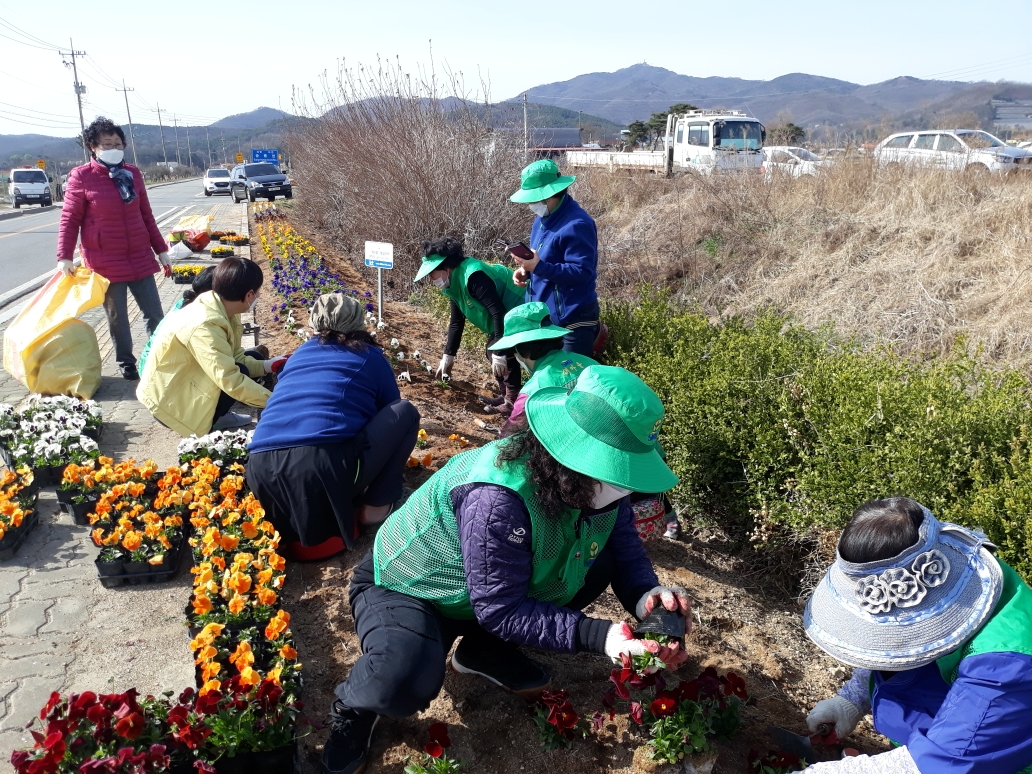 송해면새마을부녀회(회장 최효순)는 지난 4월1일 송해면 상도리 일원 도로변 꽃밭에 계절꽃(팬지) 3,000본을 식재하였습니다.