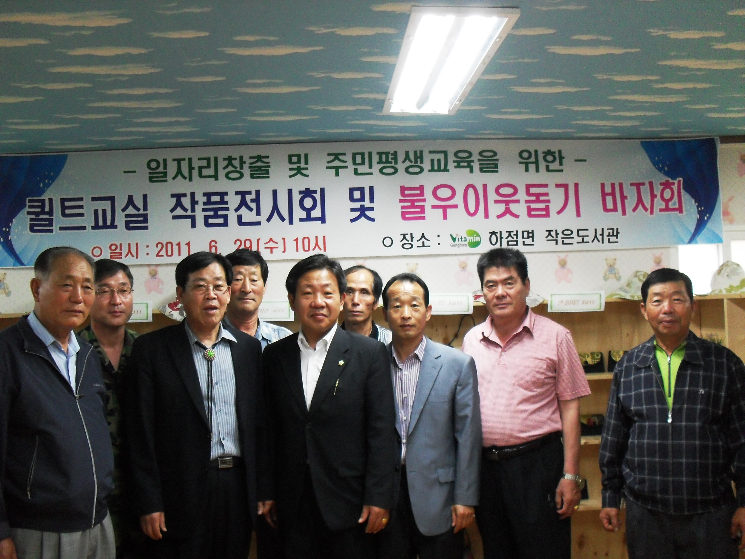하점면사무소(면장 : 문상복)에서는 청년일자리사업의 일환으로 지난 3월말부터 6월말까지 운영 하고 있는 퀼트 교실에서 수강생들이 만든 작품으로 지난 6월 29일 하점면 작은도서관에서 작품 전시회 및 불우이웃돕기 바자회를 개최하였다. 퀼트교실 수강생 11명이 3개월간의 여정 끝에 만든 100여점의 작품을 전시 한 후 판매하여 얻은 수익금으로 연말 불우이웃돕기를 위한 성금으로 사용할 예정이다.