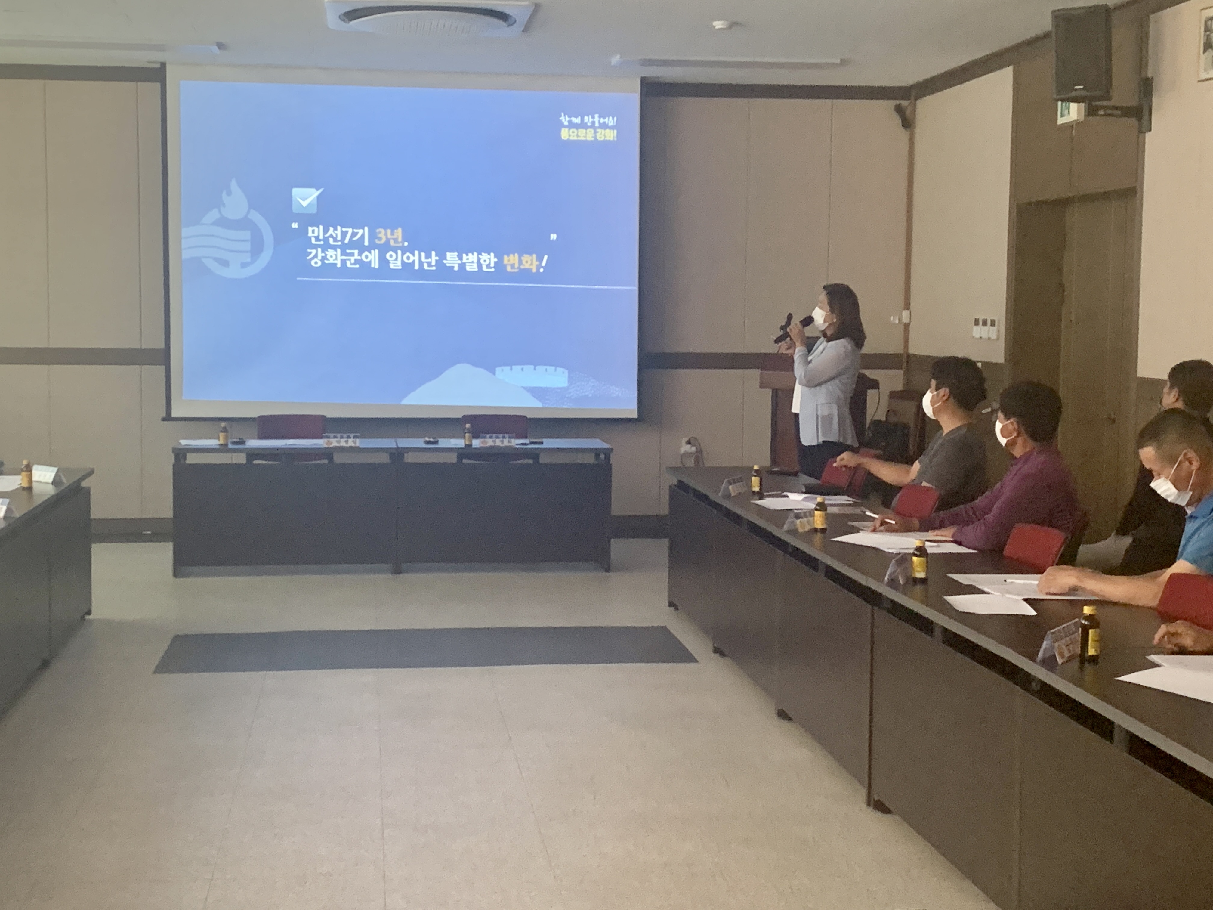 이날 염명희 면장은 △강화군, 2021년 신속집행(소비투자 부문) 인천시 1위 달성 △강화군 공영주차장 혁신적 조성사업 △강화군 행복센터 건립 △지혜의 숲 도서관 건립 △선원~길상 도로공사 등 강화군에서 추진하고 있는 대형사업들을 중심으로 그간의 진행상황과 추후 사업계획을 이장단에 설명했다.