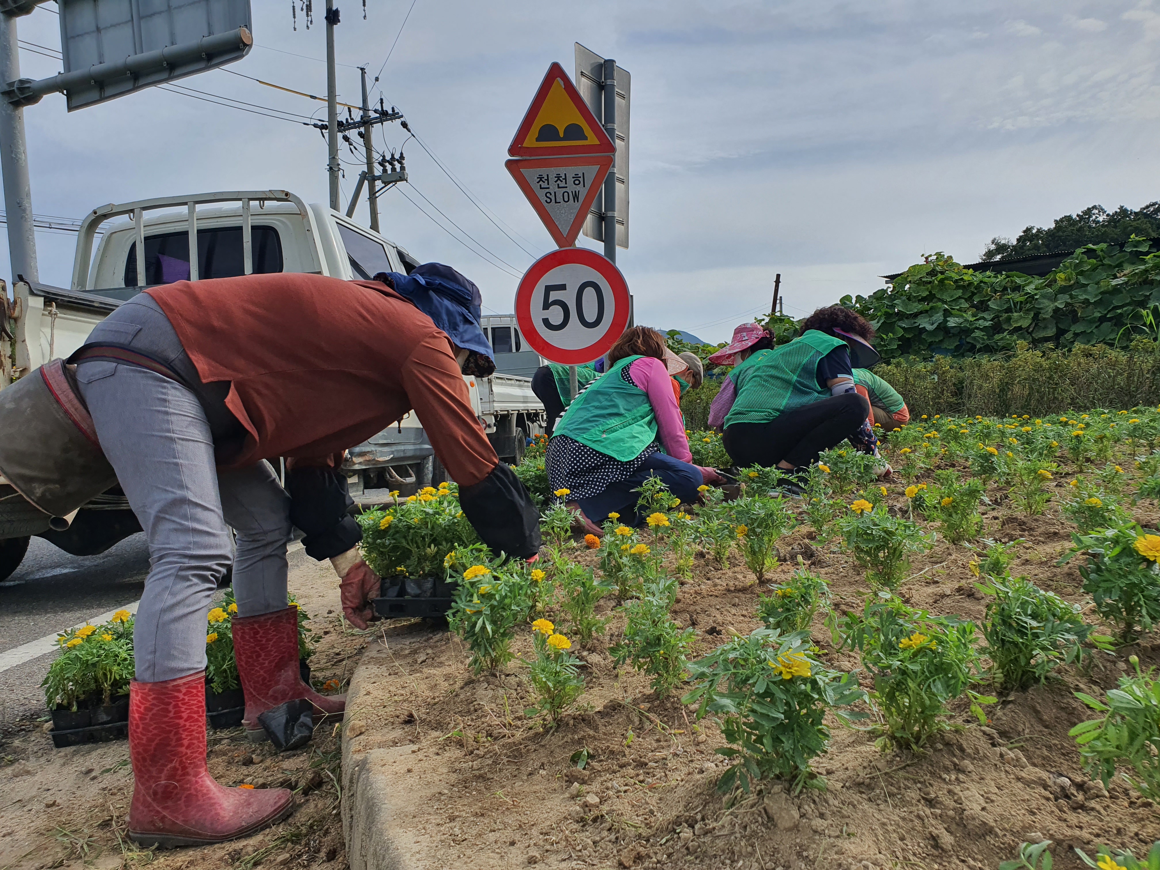 특히 이날 조성한 화단은 버스정류장과 인접하여 많은 주민이 이용하는 곳으로 화사한 메리골드로 가득 심어 지나가는 주민들의 얼굴에 웃음꽃이 활짝 피었다.