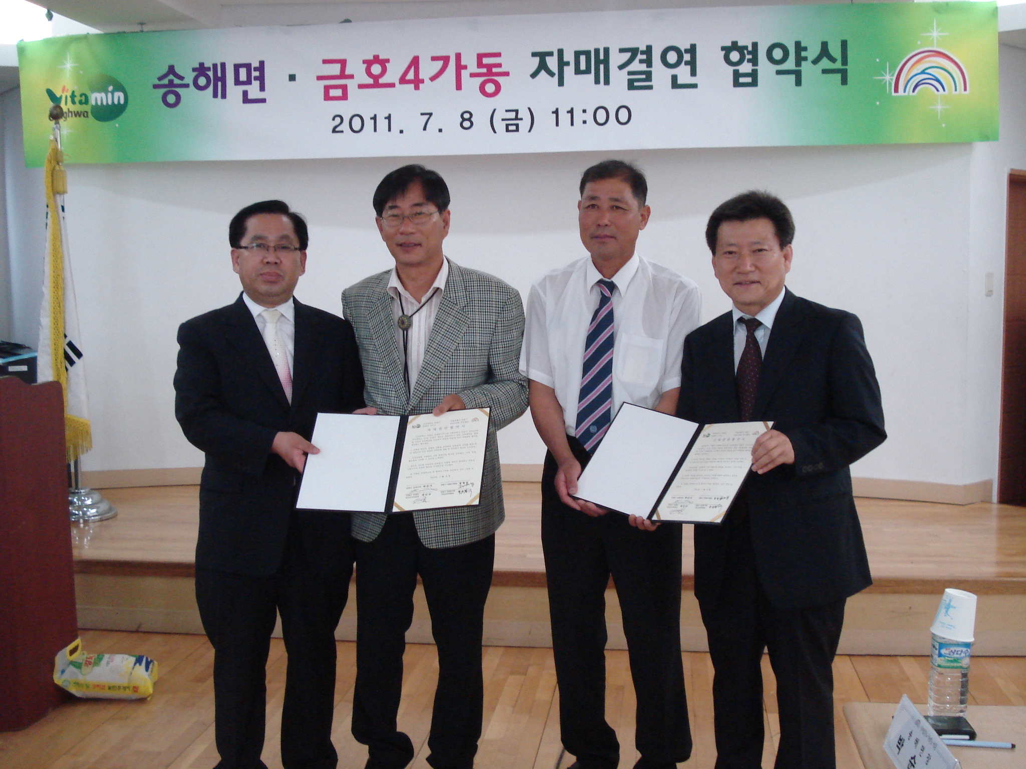 이번 자매결연행사는 도농상생(都農相生)의 새로운 동반자로서 상호 교류협력을 통한 공동발전을 도모하기 위함이며 송해면은 앞으로 친환경농산물 등을 금호4가동에 공급하기로 하고 이날 행사에 앞서 금호4가동은 강화섬쌀 10kg 200개를 주문하였다.