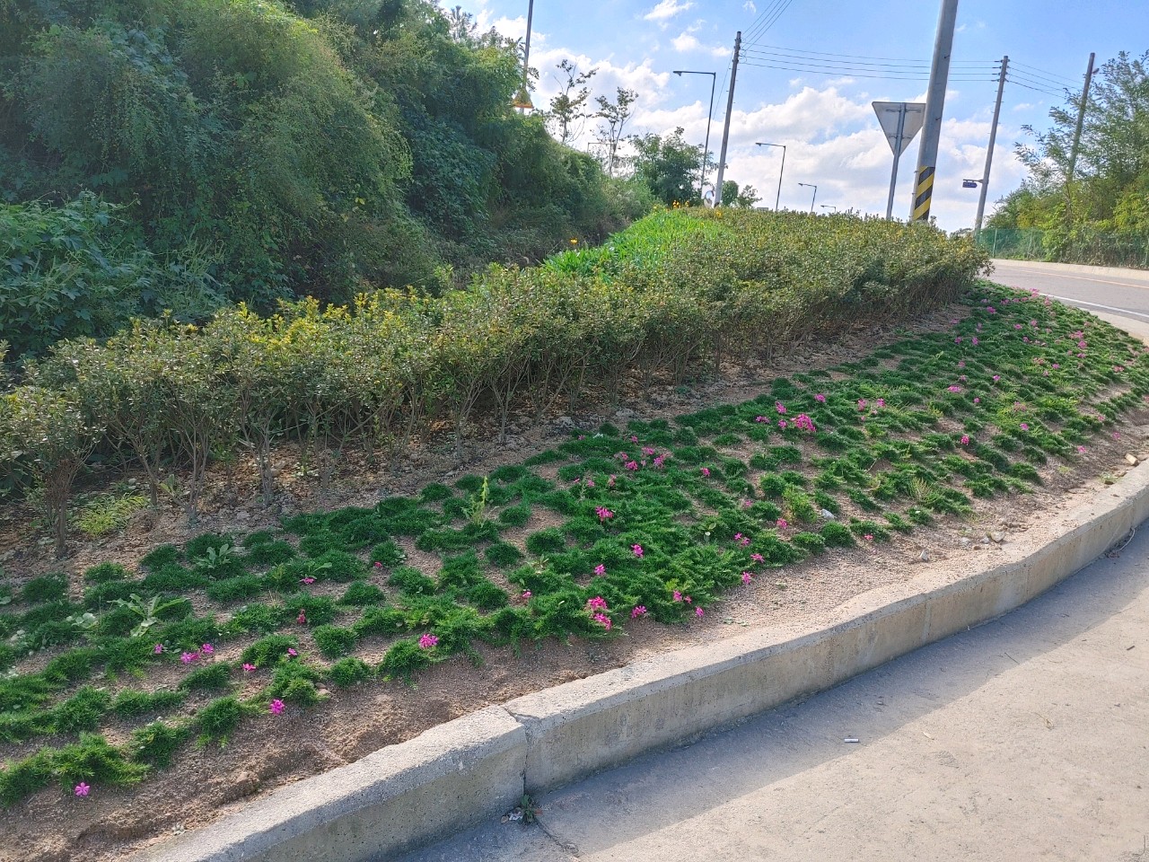 신규 화단을 조성하기 위하여 봄부터 노인회, 부녀회 등 지역주민단체에서 사전정비작업(덩쿨제거 및 환경정화)에 참여하였고, 영산홍, 가우라, 메리골드 등 식재, 꽃씨(코스모스) 2kg를 파종하여 주민들에게 쾌적한 환경을 제공하게 되었습니다.