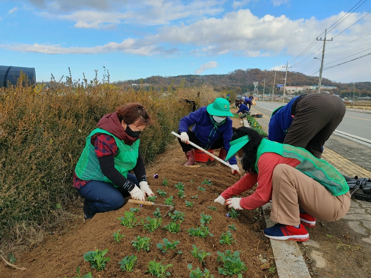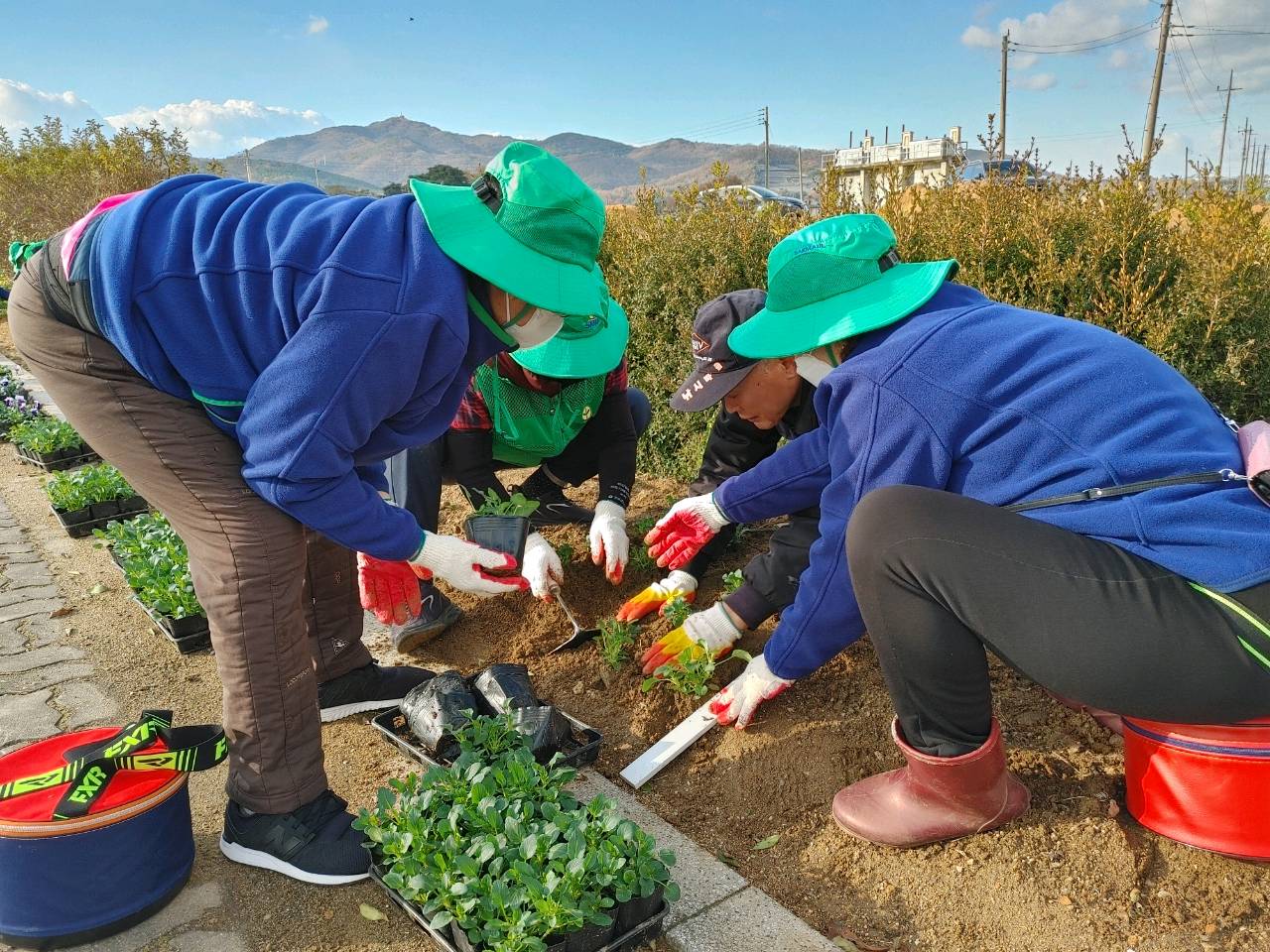 강화군 송해면 새마을부녀회(회장 최효순)는 11일 송해면 상도리 일원 도로변 꽃밭에 계절꽃(겨울팬지) 3,000본을 식재하였습니다.