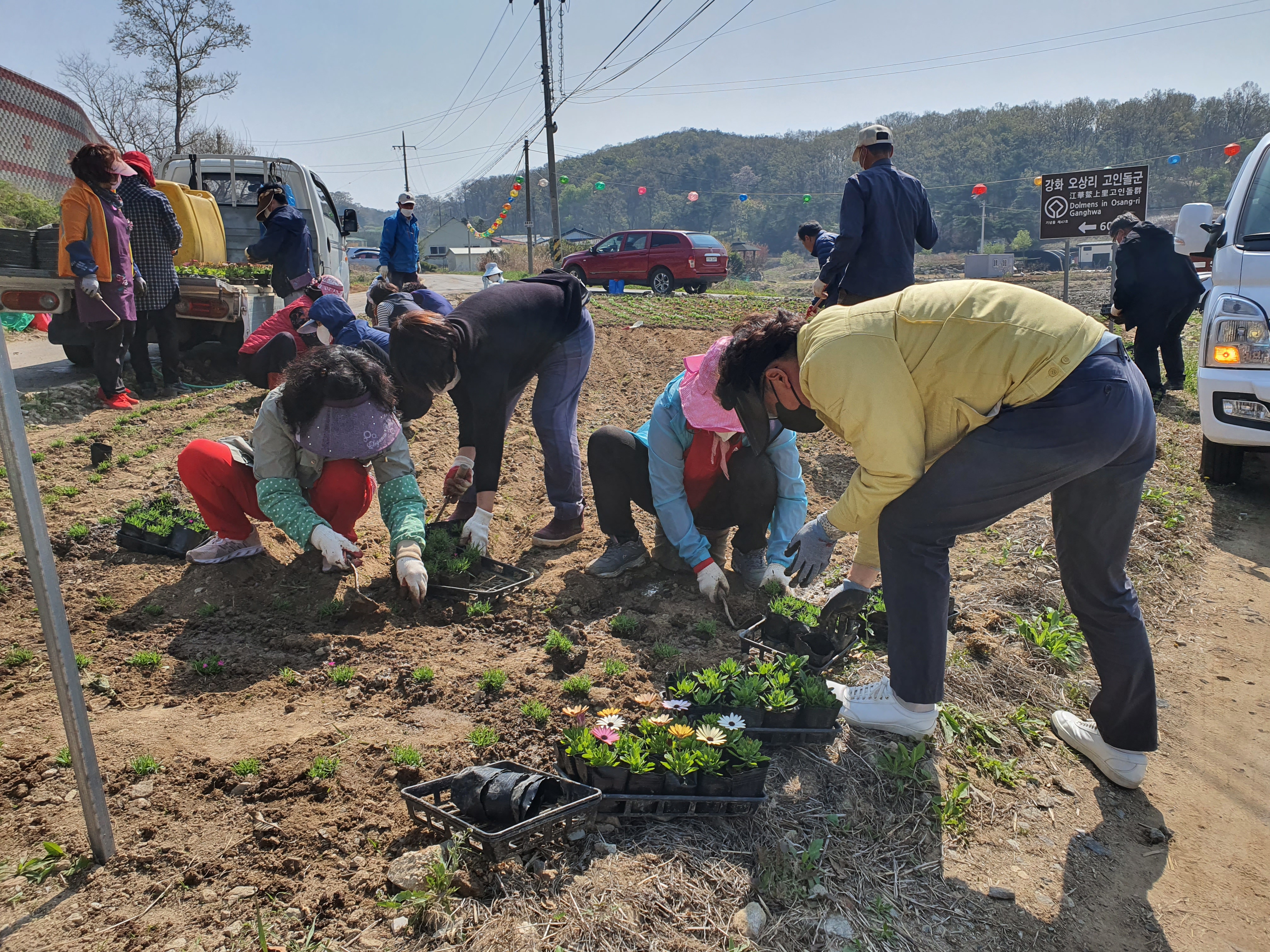 이날 20여명의 주민자치위원들은 이른 아침부터 200㎡ 상당의 넓은 화단에 봄꽃을 식재하기 위해 구슬땀을 흘렸다. 이번 식재한 화단은 쓰레기 무단투기로 몸살을 앓던 곳이었으나 2021년부터 주민자치위원회 화단으로 지정되어 주민들과 나들길 관광객들에게 큰 호응을 얻고 있다.