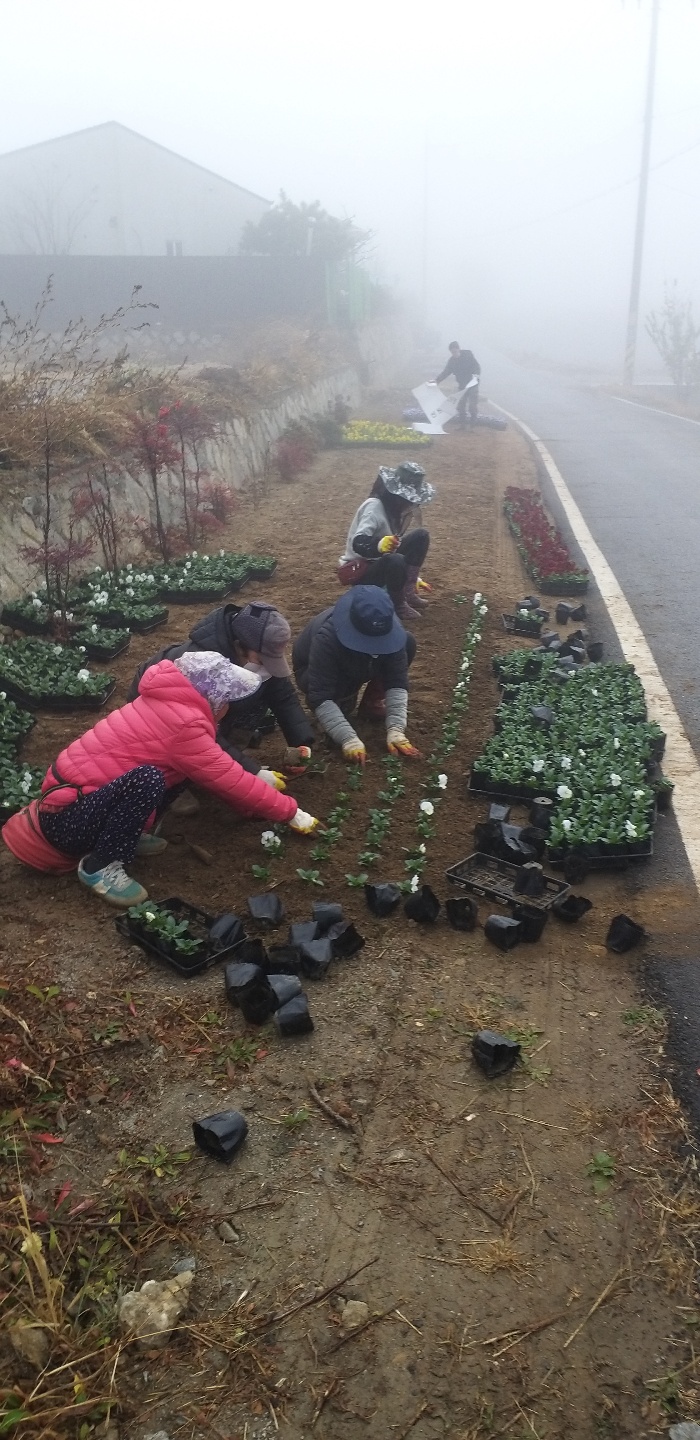 선원면에서 겨울 추위에도 잘 자라는 겨울 팬지를 식재했습니다~~!