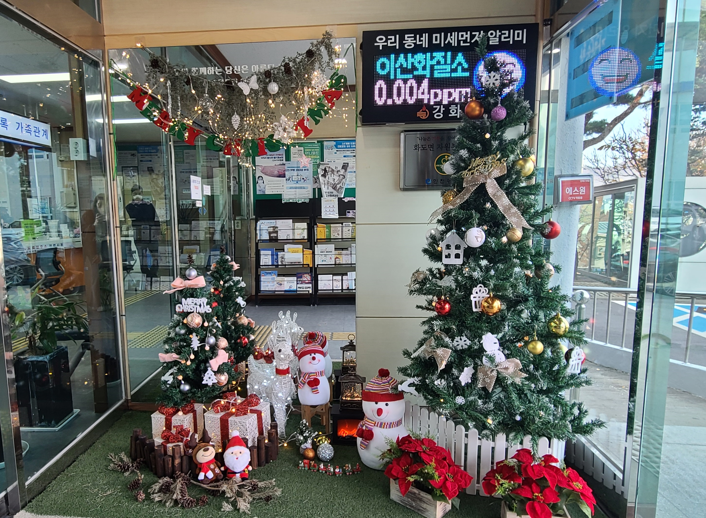 이른 크리스마스 장식으로 면사무소 입구를 환하게 밝혔다.