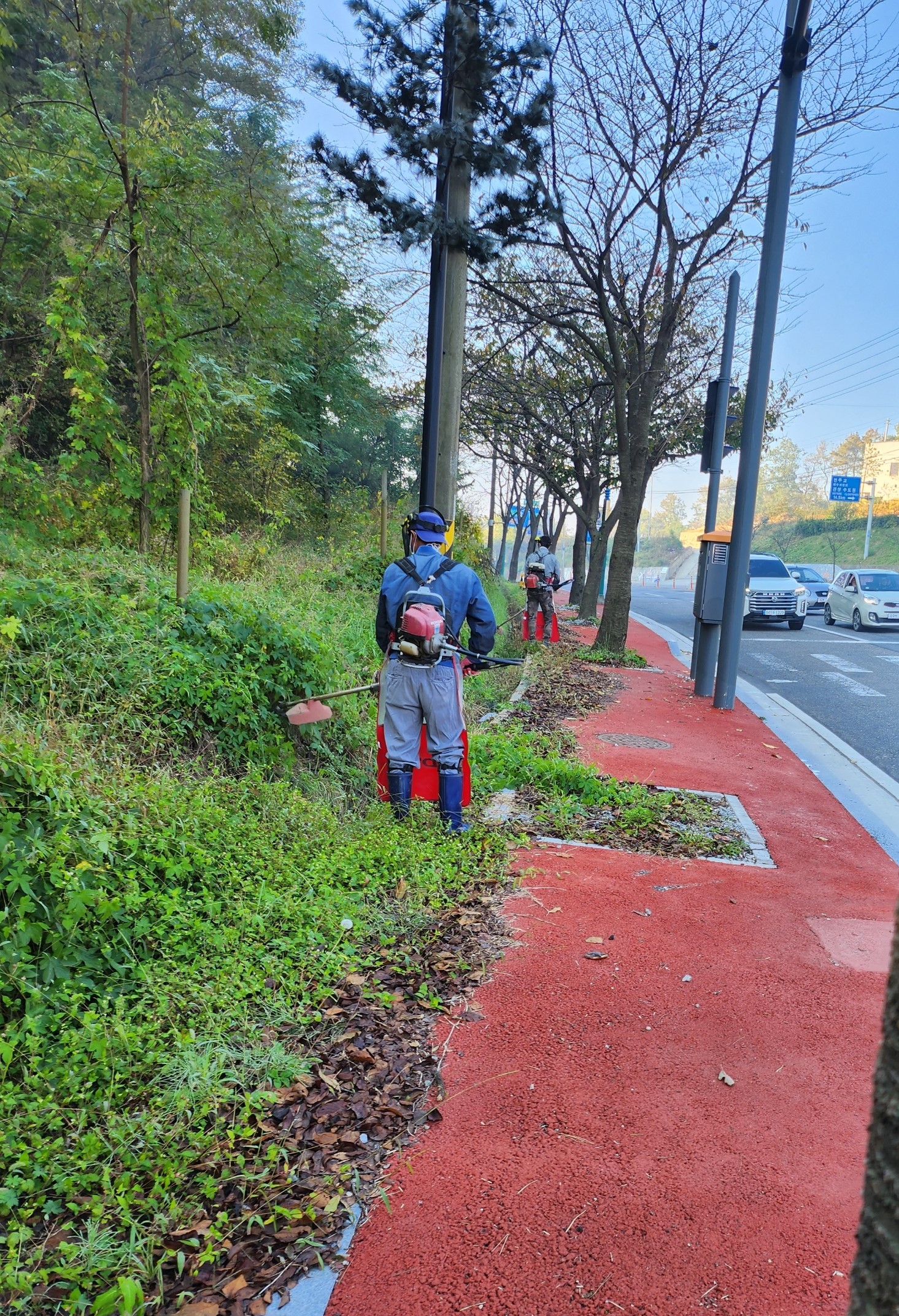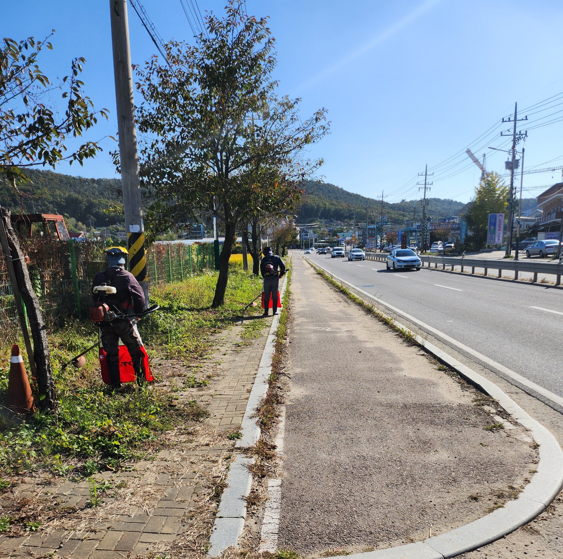 선원면에서 주민들의 편의를 위해 중앙로 제초작업에 나섰다.