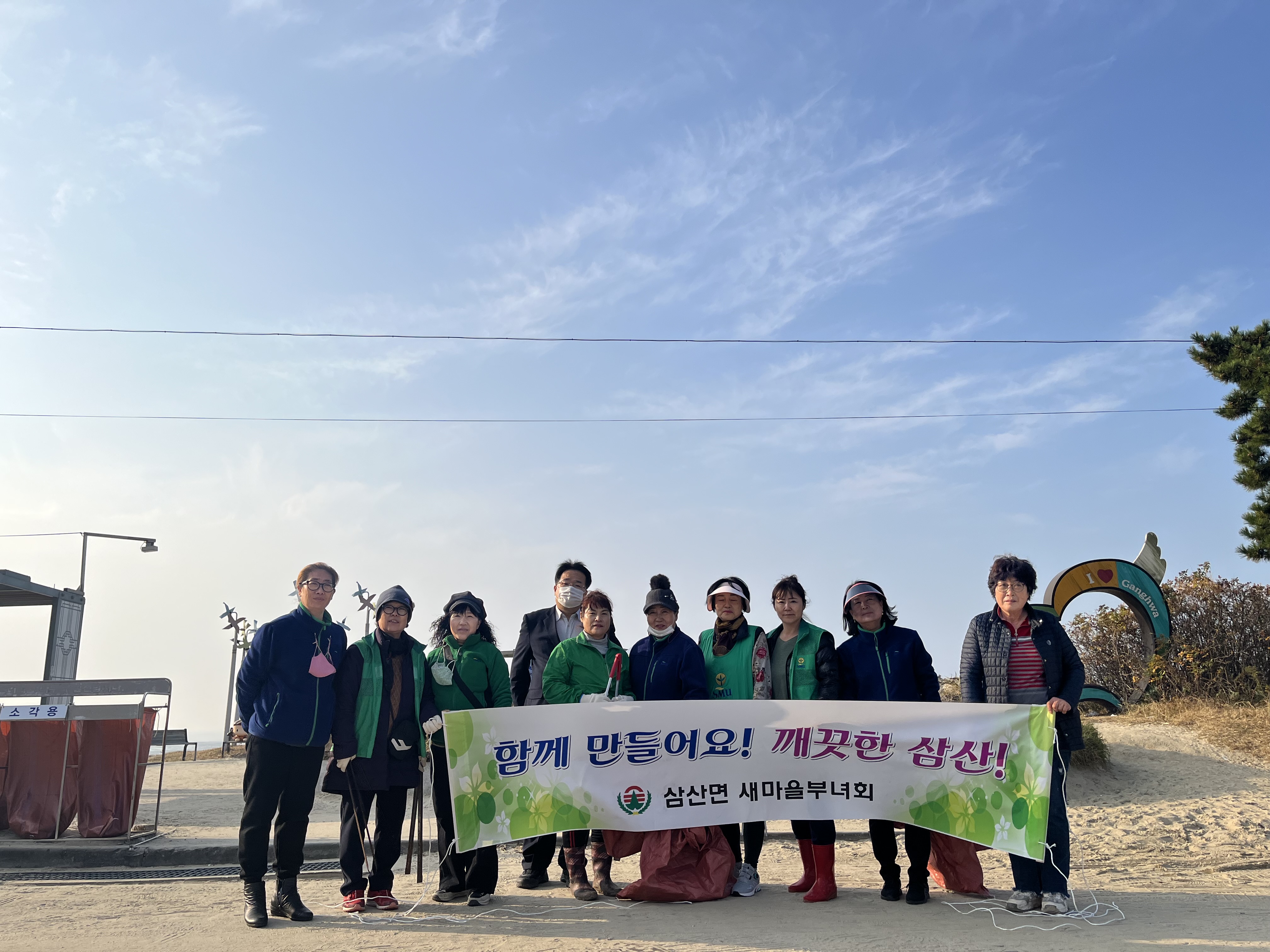 삼산면 부녀회(회장 이민희)는 24일(금) 매음리 민머루해변 일원(강화나들길 코스)에서 각종 쓰레기 및 방치된 폐그물 등을 수거하는 환경정화활동을 실시하였다.