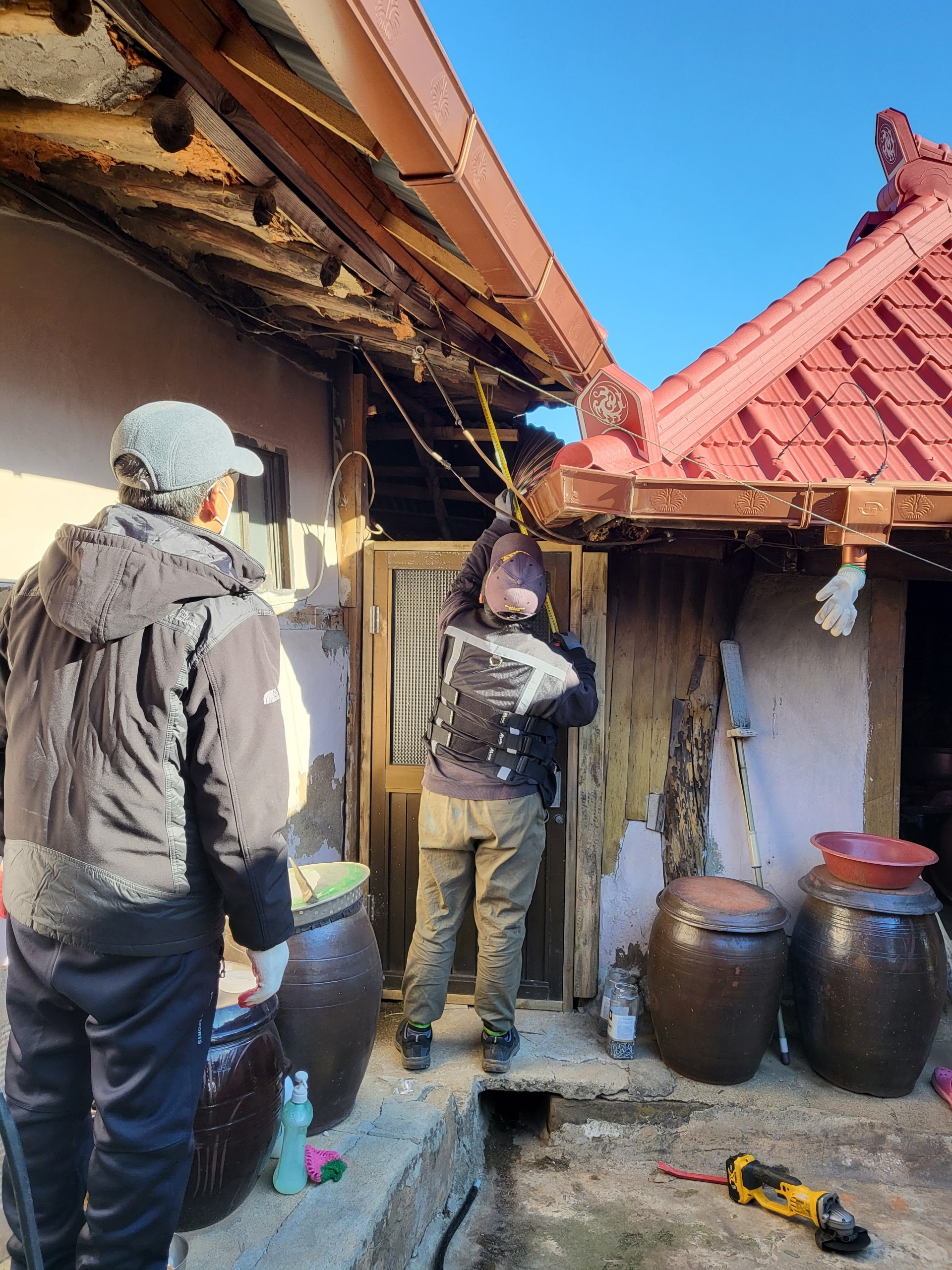 집수리 작업장면(처마)