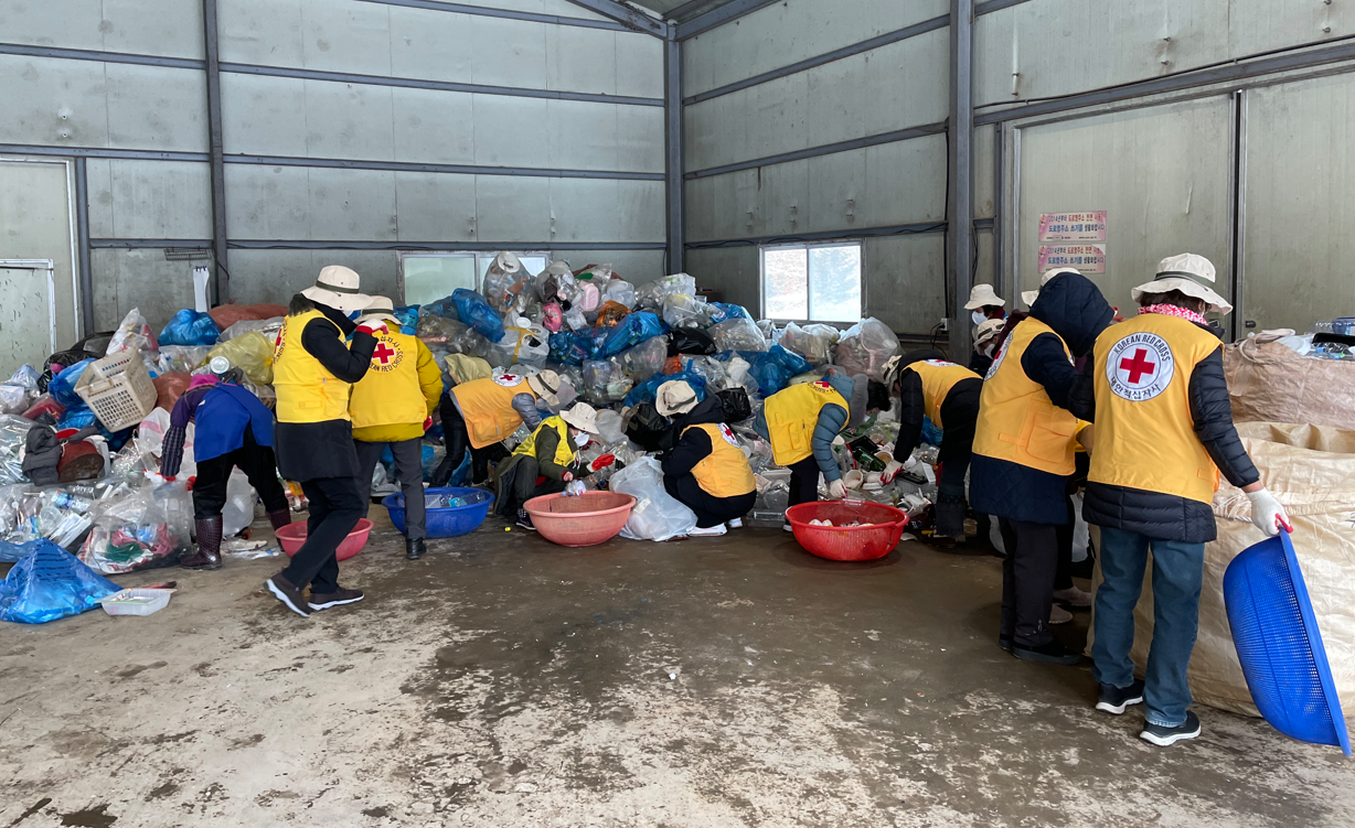 이날 적십자부녀봉사회 회원 27명은 영하10도의 추운 날씨에도 불구하고 자원순환을 통한 깨끗한 강화 만들기에 일조하겠다는 마음으로 해안가에서 수거된 해안쓰레기에서 재활용품을 선별하는 작업을 하였다.