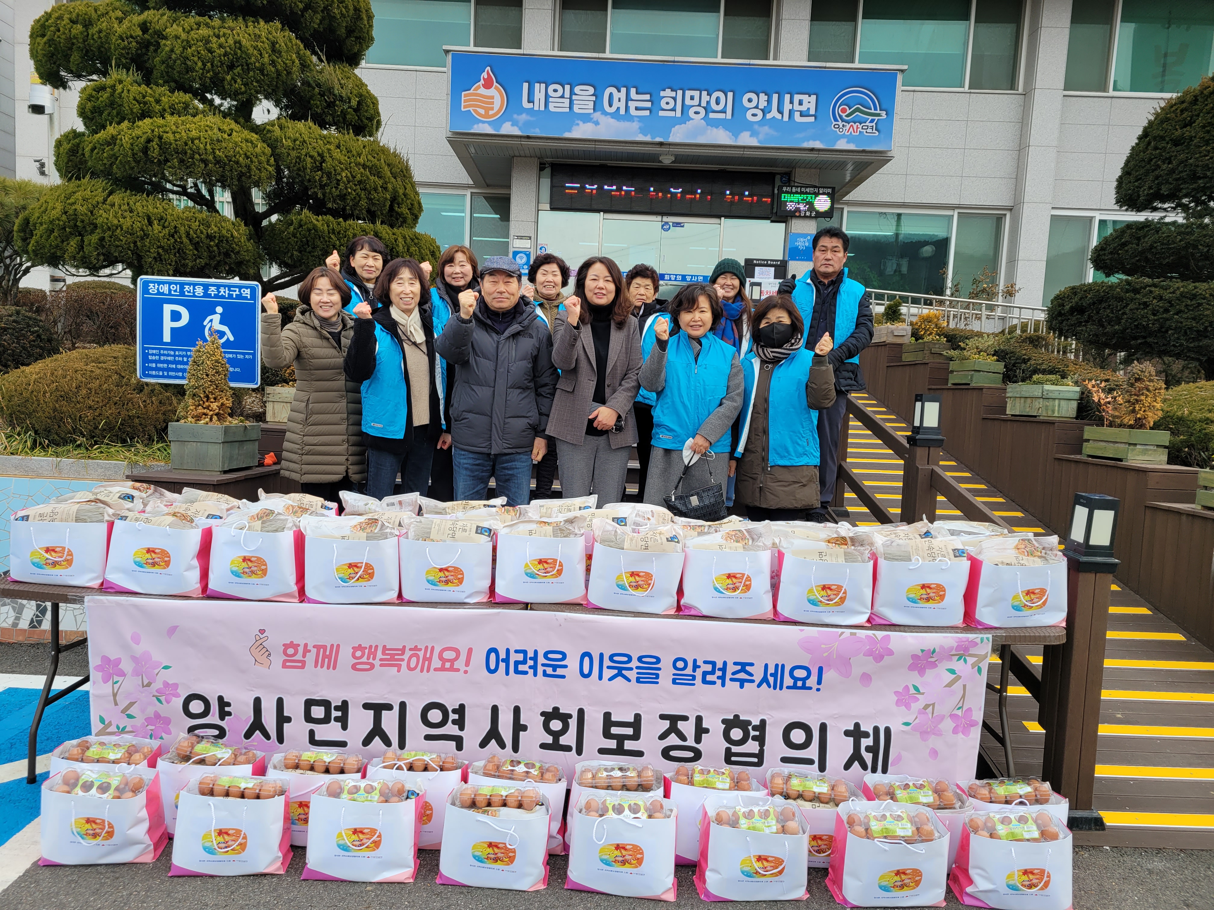 2023년 1월 17일 강화군 양사면 지역사회보장협의체(위원장 김우동, 공동위원장 이명자 면장)는 어르신들이 즐거운 설을 보낼 수 있도록 ‘설 명절 꾸러미’ 50개(150만원상당)를 기탁했다.