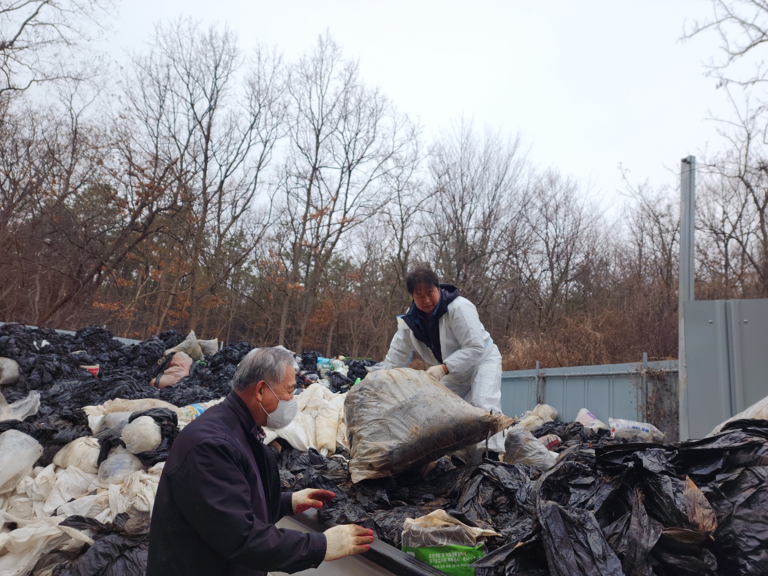 강화 교동면 이장단, 방치된 영농폐기물 수거