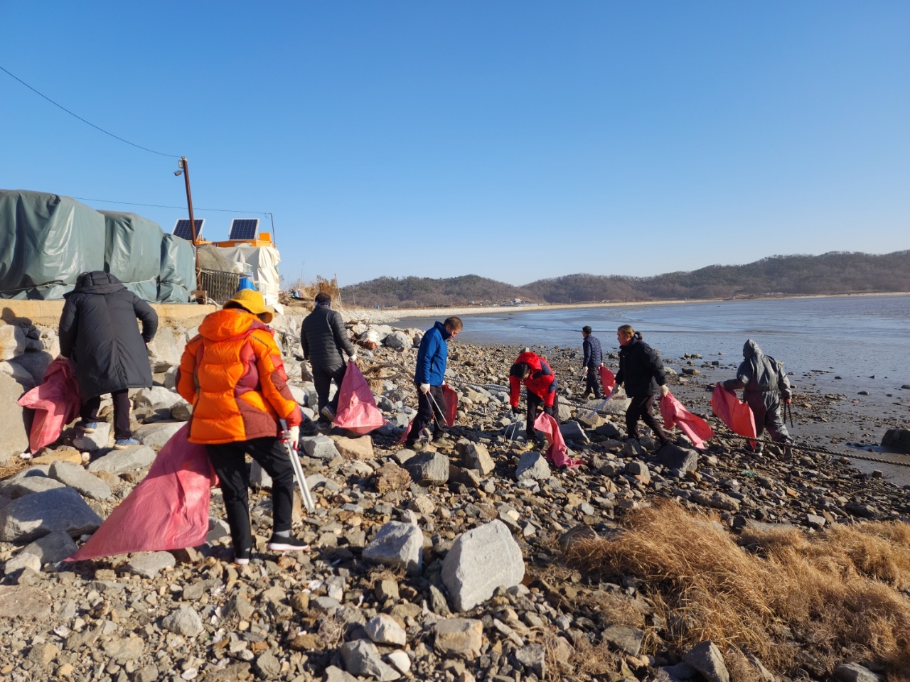 환경정화에는 이장 17명이 참여해 죽산포구와 월선포, 남산포, 빈장포구 등에 겨우내 쌓인 해안쓰레기를 집중적으로 수거했다.