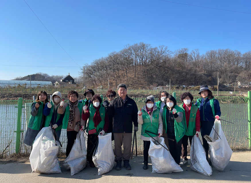 길상면 새마을부녀회(회장: 오경숙) 회원 16명은 지난 2월 27일(월) 온수천 일원에서 하천변 쓰레기 수거활동을 하였다.