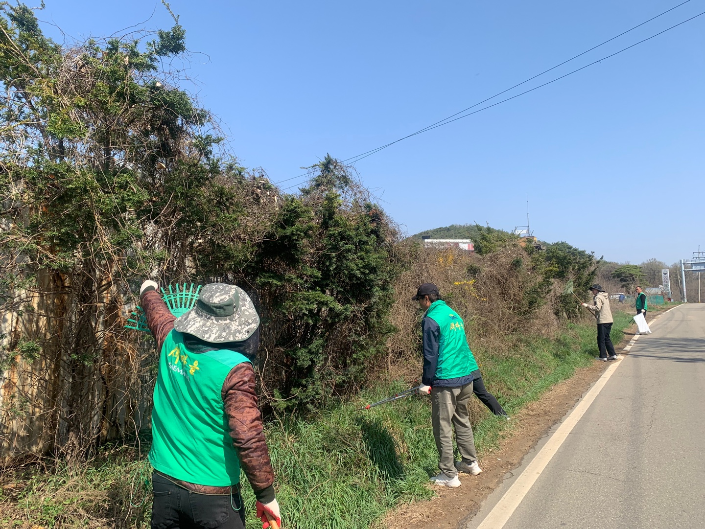 주민자치위원회를 시작으로 새마을지도자, 이장단 등 총 9개 단체와 함께 초지대교에서 온수리 시내를 잇는 대로와 해안도로 등 주요도로 총 15KM 구간의 환경정화를 시작 하였다.