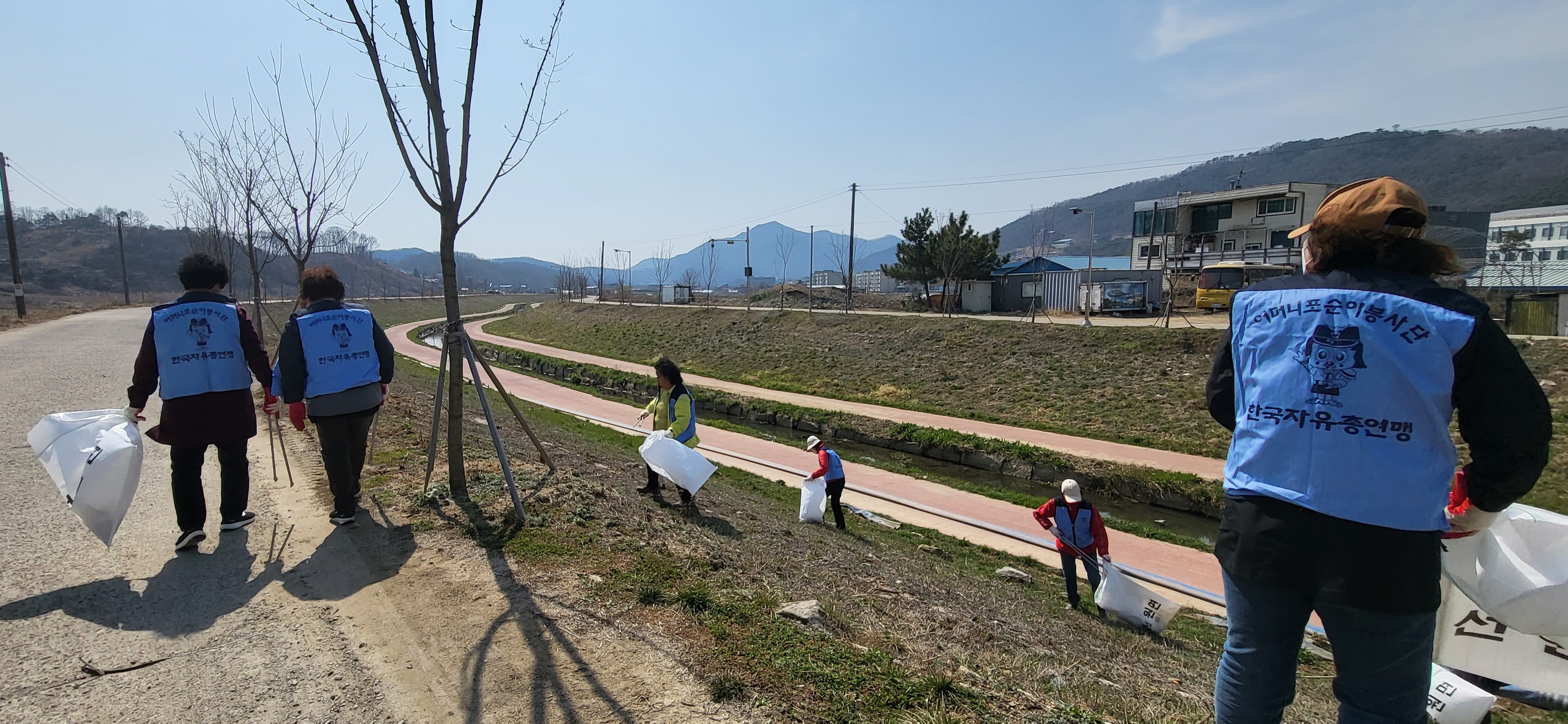 선원면 선행천 일대는 하천변을 따라 산책코스가 잘 마련되어있어 주민들이 즐겨 찾는 쉼터이다. 따뜻해지는 날씨에 방문객들이 본격적으로 찾아오기 전, 한국자유총연맹 선원면분회 회원들은 하천변에 무단 투기된 쓰레기를 수거하기 위해 나섰다.