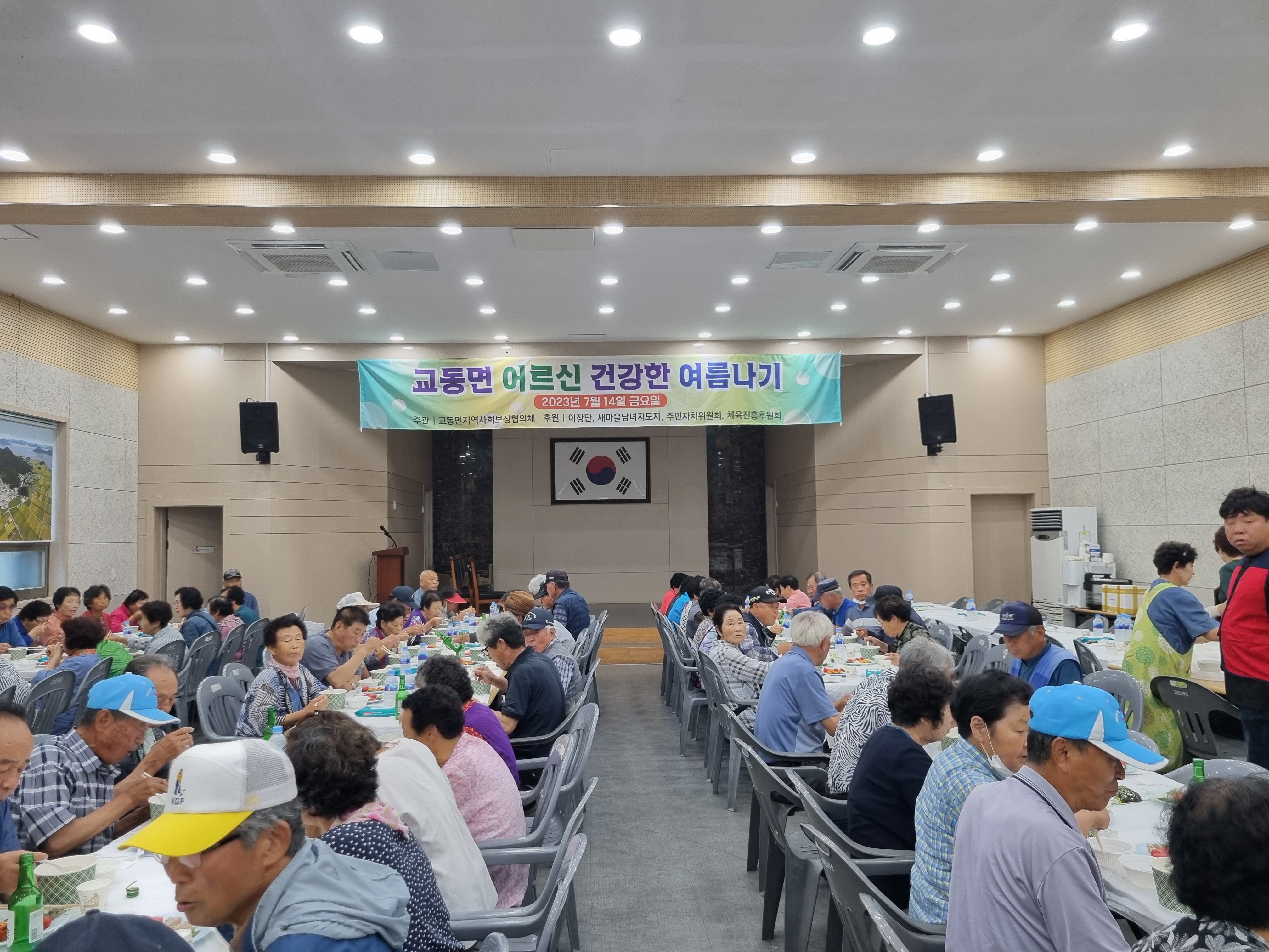 한편, 송현철 교동면장은 "어르신들에게 드린 맛있는 한 끼가 보양식이 되어 무더운 여름을 이겨낼 수 있는 힘이 되길 바란다."고 전했다.