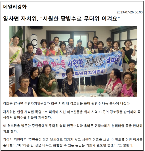 양사면, 주민자치위원회 팥빙수 나눔행사 개최