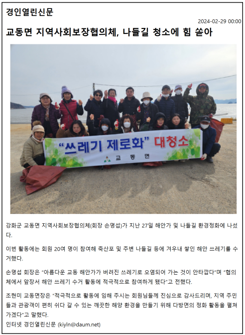 교동면 지역사회보장협의체, 나들길 청소에 힘 쏟아