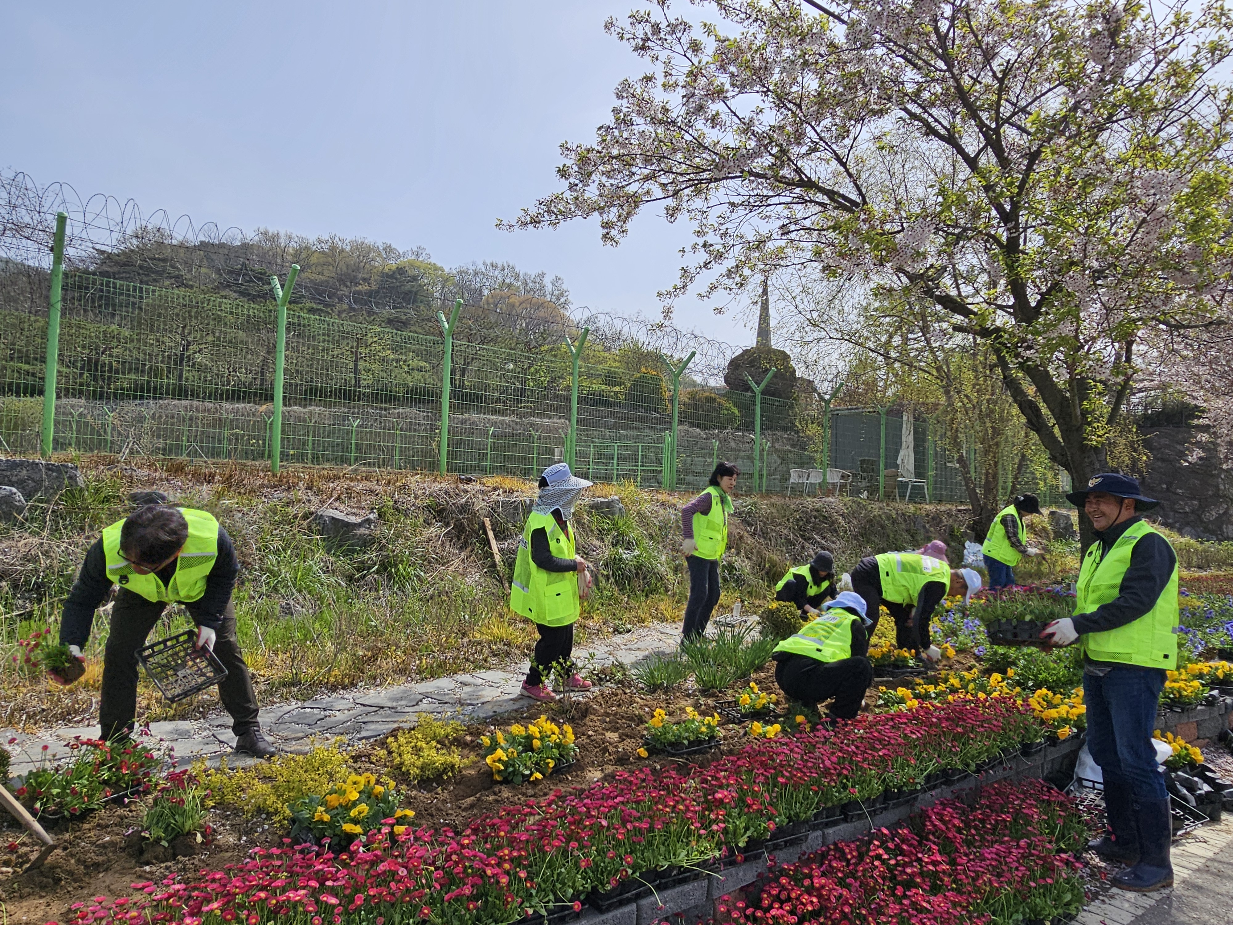 화도면 주민자치위원회, 장화리 화단 알록달록 예쁜 꽃 심기