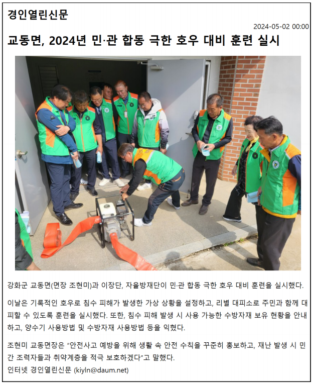 교동면, 2024년 민관 합동 극한 호우 대비 훈련 실시