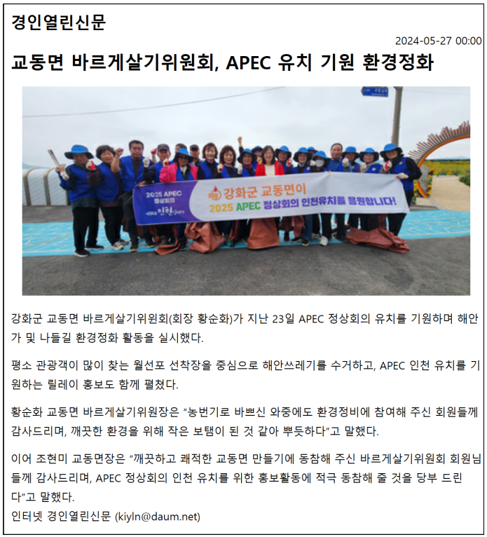 교동면 바르게살기위원회, APEC 유치 기원 환경정화