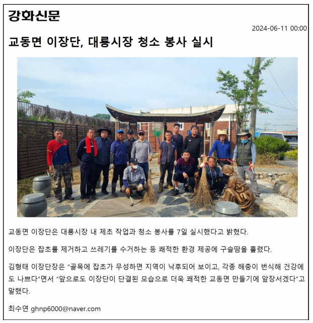 교동면 이장단, 대룡시장 청소 봉사 실시