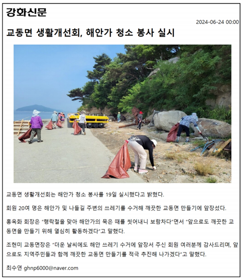 교동면 생활개선회, 해안가 청소 봉사 실시