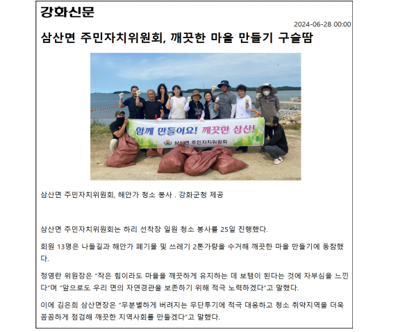 삼산면 주민자치위원회, 깨끗한 마을 가꾸기 구슬땀