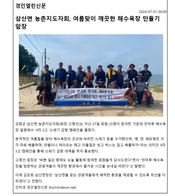 삼산면 농촌지도자회, 여름맞이 깨끗한 해수욕장 만들기 앞장
