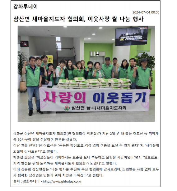 삼산면 새마을지도자협의회, 이웃사랑 쌀나눔행사 실시